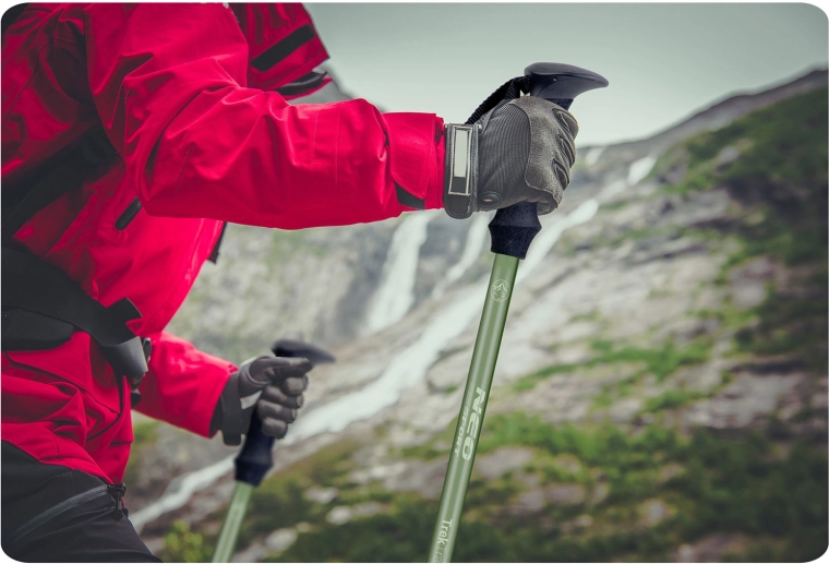 Amortizarea ANTYSHOCK™ atenuează eficient loviturile, reduce vibrațiile și protejează articulațiile și mușchii în timpul drumețiilor lungi. Mânerul ergonomic din spumă EVA este respirabil, se usucă rapid și asigură o prindere fermă. Cureaua moale și reglabilă stabilizează mâna fără a necesita strângere puternică.