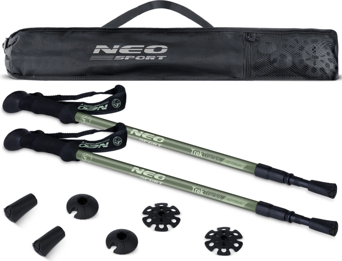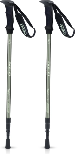 Bețele de trekking NEO SPORT NS-381 sunt concepute pentru condiții solicitante – de la poteci montane la câmpuri acoperite de zăpadă. Construcția telescopică în trei segmente, cu interval de 65–135 cm, permite ajustare rapidă după înălțimea utilizatorului și profilul terenului. Datorită greutății reduse și dimensiunilor compacte, se transportă ușor în rucsac sau se prind la exterior.