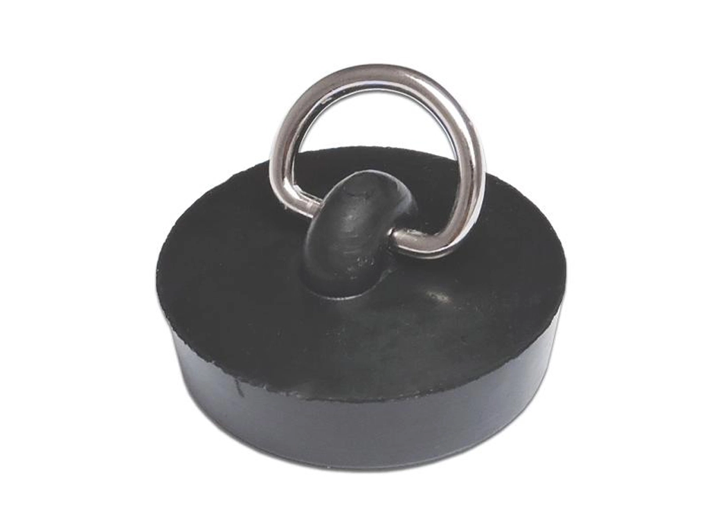 Practic dop din cauciuc pentru lavoar, cadă și chiuvetă cu diametrul de 39 mm, în culoare neagră elegantă, cu inel metalic pentru manevrare ușoară. Formă ideală pentru etanșare fiabilă și extragere rapidă chiar și în caz de suprapresiune a apei.