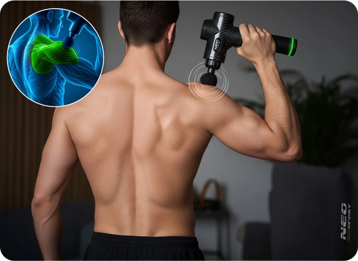 Construcția fără fir, mânerul ergonomic și cele 30 de niveluri de intensitate ajută la scurtarea recuperării, relaxarea mușchilor încordați și îmbunătățirea mobilității după efort.