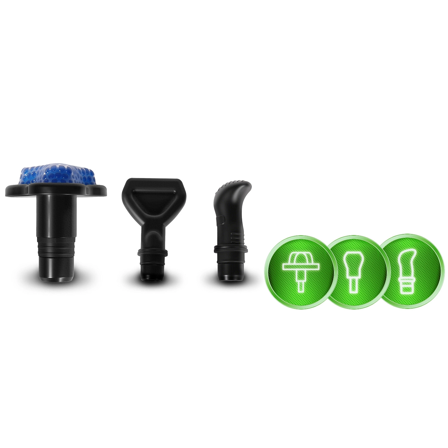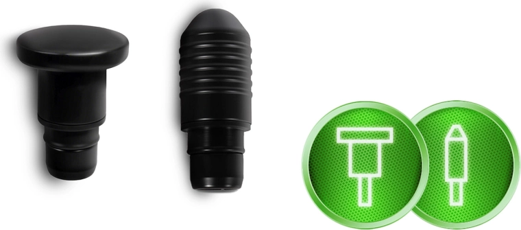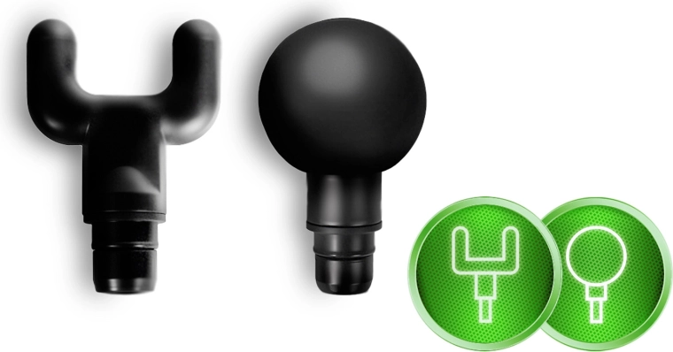 Cap U pentru zona de lângă coloană, cap sferic pentru grupuri musculare mari, cap plat pentru relaxare versatilă, vârf pentru masaj punctiform intens, cap gelat răcitor, cap tip lamă pentru de-a lungul structurilor osoase, cap tip deget pentru presiune precisă, cap ciupercă dublu pentru stimularea circulației și cap ciupercă moale pentru zone sensibile.