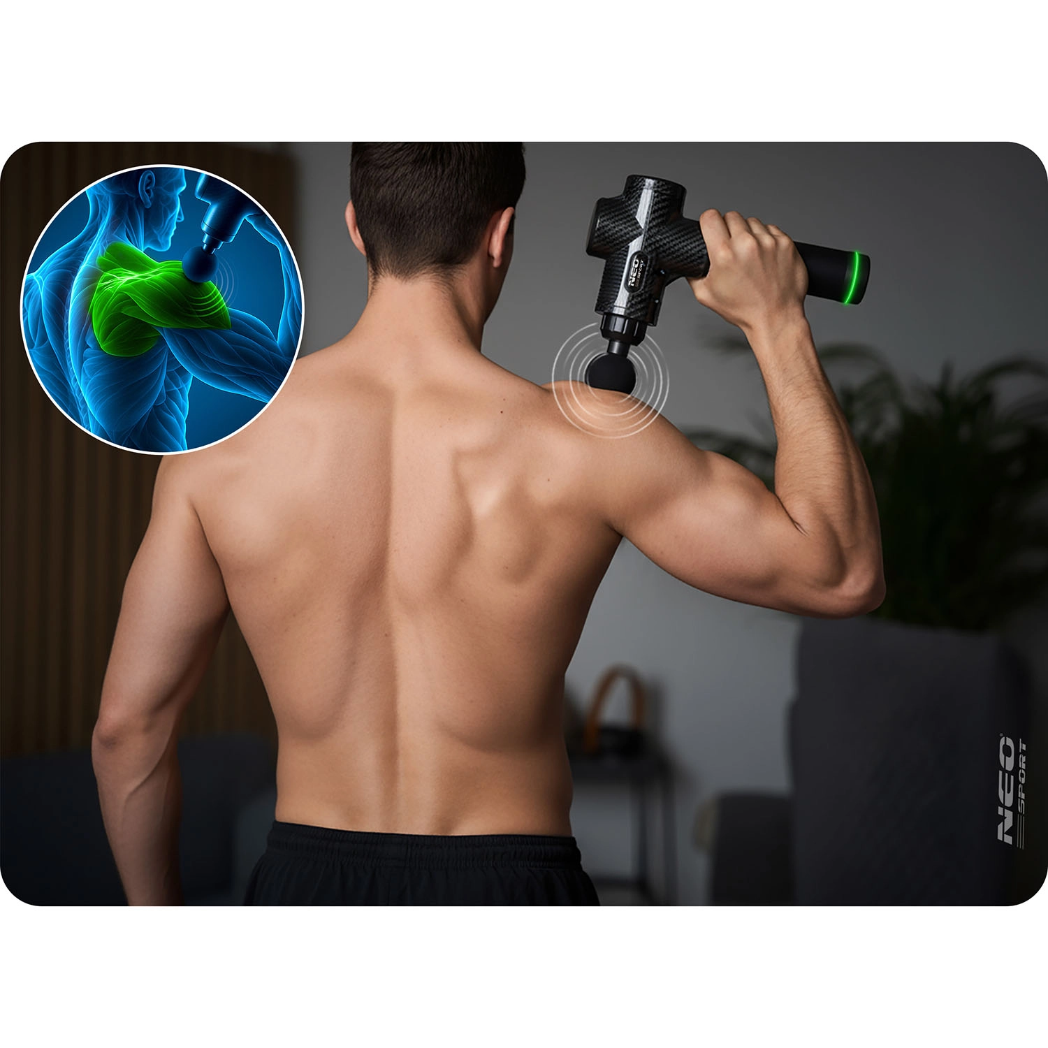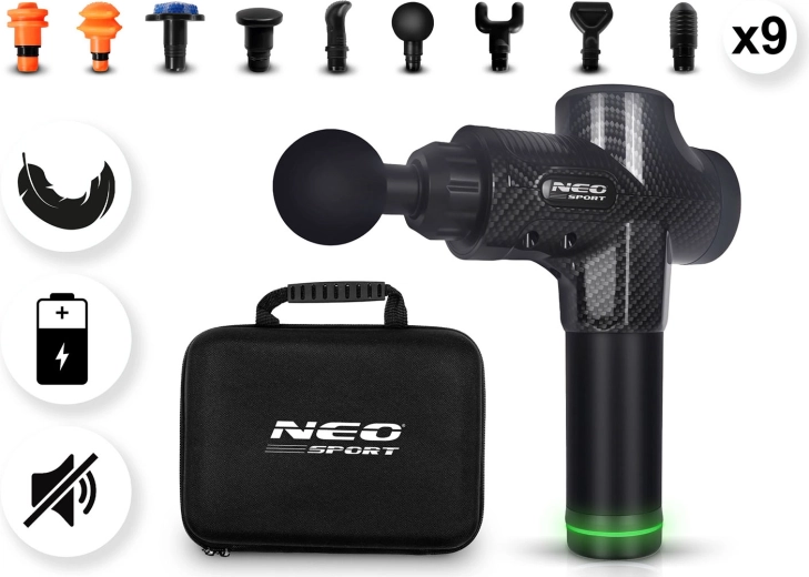 Descoperiți alinarea eficientă a tensiunii cu pistolul de masaj NEO-SPORT NS-503. Oferă până la 30 de niveluri de intensitate, 9 capete interschimbabile pentru diferite zone ale corpului și autonomie îndelungată a bateriei. Datorită formei ergonomice, funcționării fără fir și husei practice, este ideal pentru acasă, sală și călătorii. Utilizarea în siguranță este asigurată de protecția la supraîncălzire și de o execuție de calitate ce respectă normele europene.