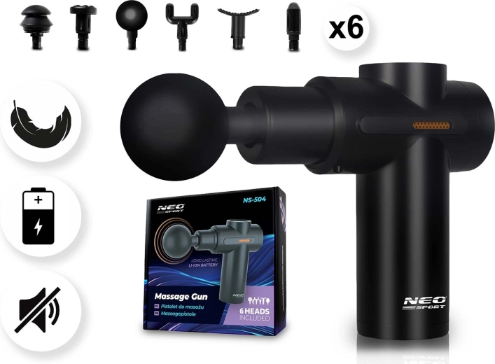 Alină mușchii înțepeniți oricând și oriunde cu pistolul de masaj fără fir NEO-SPORT NS-504. Oferă 6 niveluri de intensitate, 6 capete interschimbabile pentru diferite grupe musculare și un design ergonomic pentru o prindere confortabilă. Datorită bateriei integrate rezistente și încărcării prin USB‑C, este ideal pentru acasă, sală și călătorii. Protecția la supraîncălzire și finisajul premium, conform standardelor europene de siguranță, asigură o utilizare liniștită și sigură.