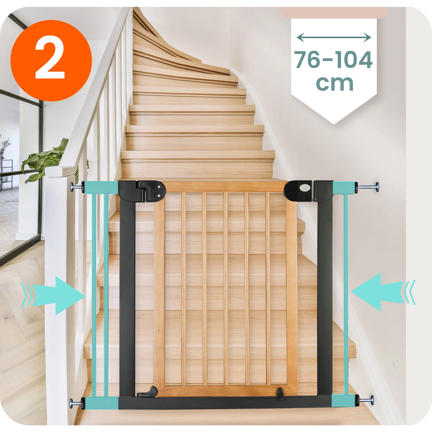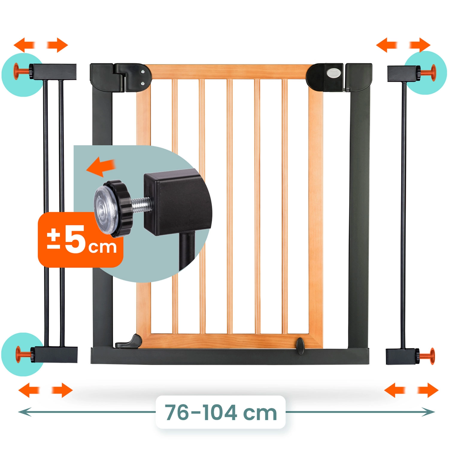 Bariera universală de siguranță NUKIDO cu prindere prin presiune, fără găurire protejează copiii și animalele de companie. Oferă reglare lină a lățimii 76–104 cm, înălțime 77 cm, deschidere cu o singură mână și deschidere bidirecțională cu posibilitatea de blocare la 90°. Combinația stilată negru-lemn se potrivește atât interioarelor moderne, cât și celor naturale.