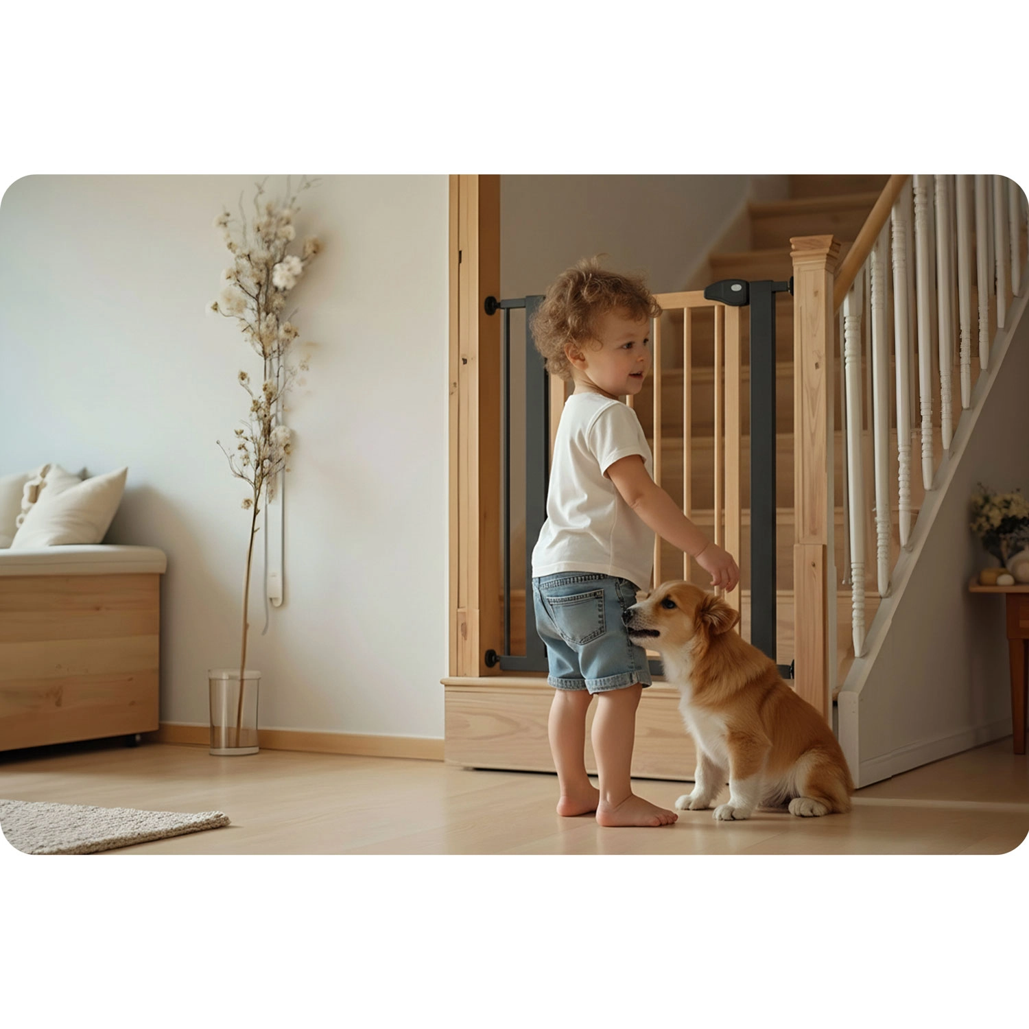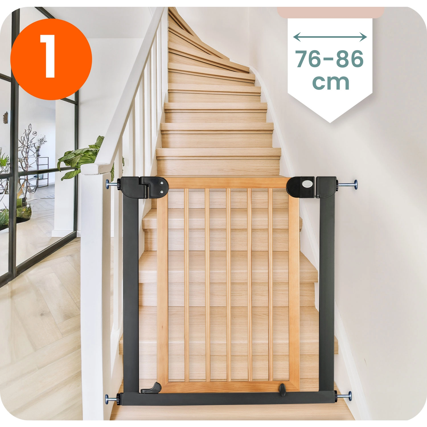 Asigurați scările, ușile și trecerile în câteva clipe – fără găurire și fără a deteriora pereții. Bariera NUKIDO se fixează prin presiune cu ajutorul a 4 puncte de prindere, astfel încât o puteți monta și demonta cu ușurință. Datorită designului elegant negru-lemn, se potrivește stilului scandinav, modern sau loft.