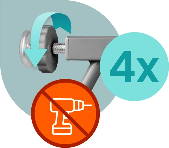 - Instalare ușoară fără unelte – fixare rapidă cu șuruburi de presiune.