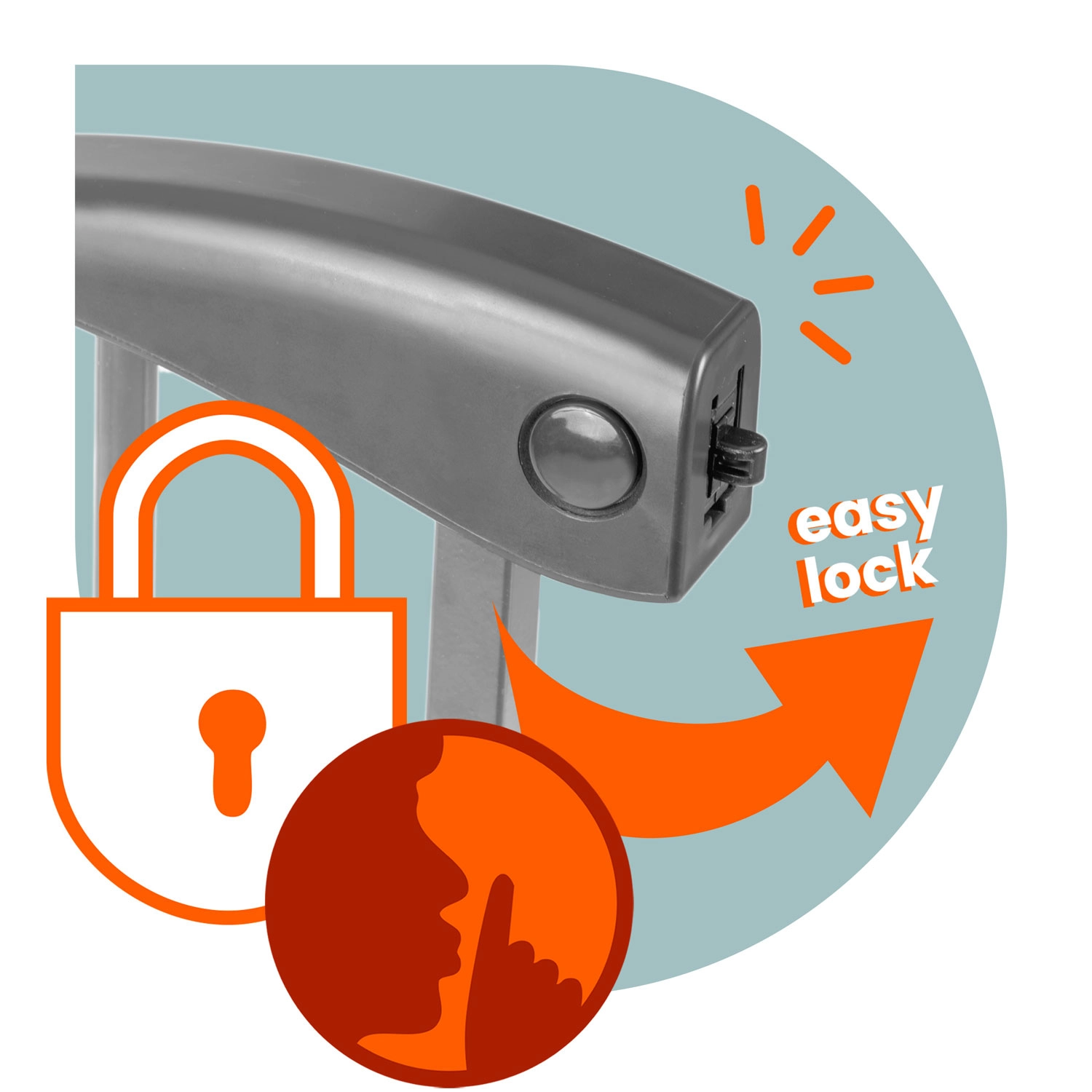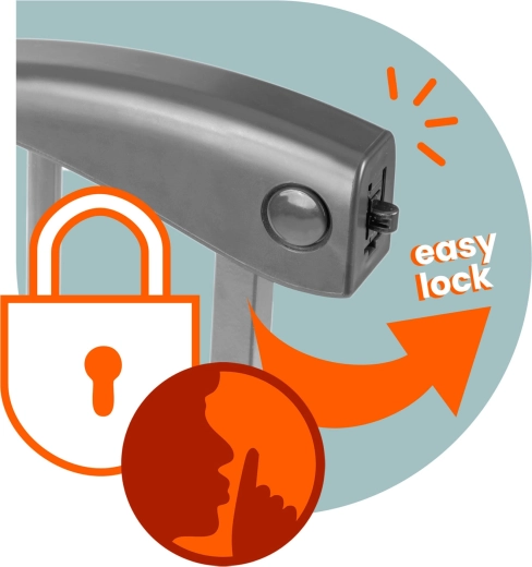 Combinația dintre butonul lateral și glisarea mânerului previne deschiderea accidentală. Este posibilă și o blocare suplimentară inferioară pentru siguranță maximă.