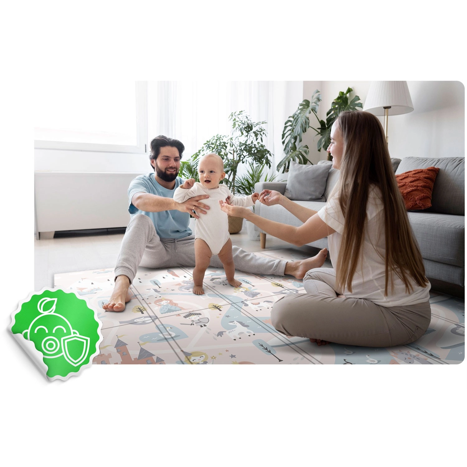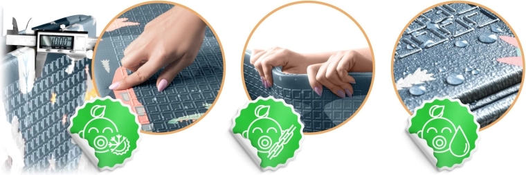 Grosimea de 1 cm din spumă XPE de calitate asigură un pas moale, amortizarea căzăturilor și o senzație plăcută de căldură de la sol. Ideală pentru suprafețe dure precum gresie sau parchet.