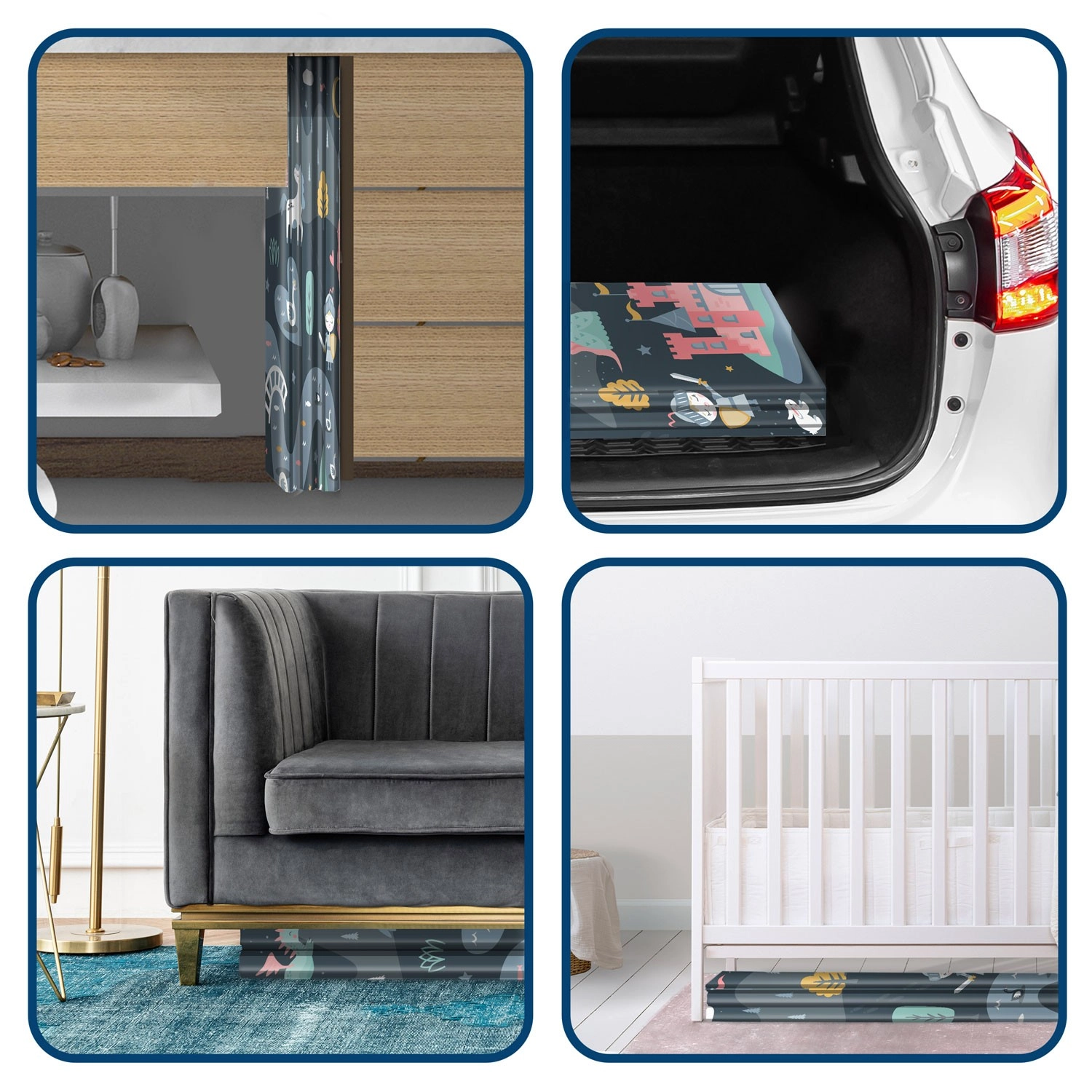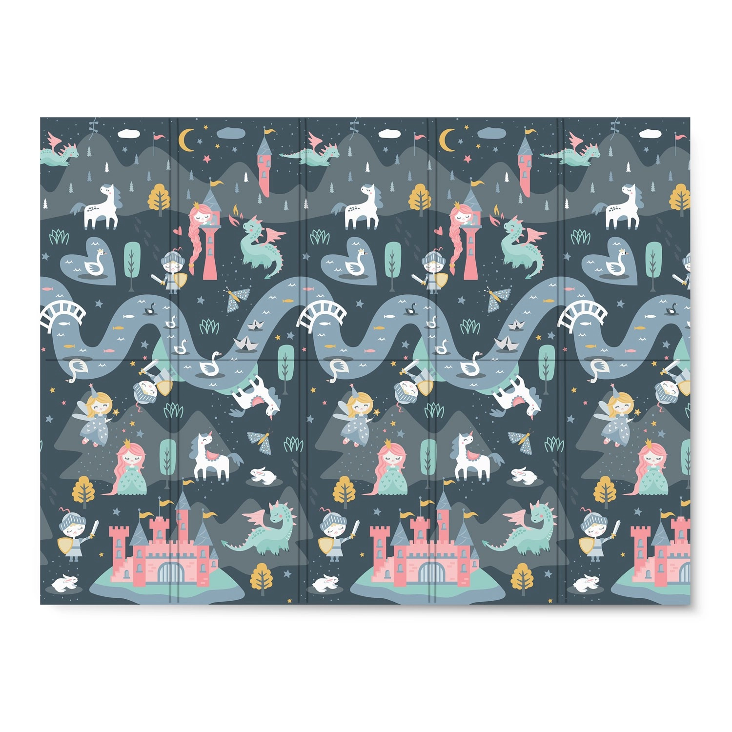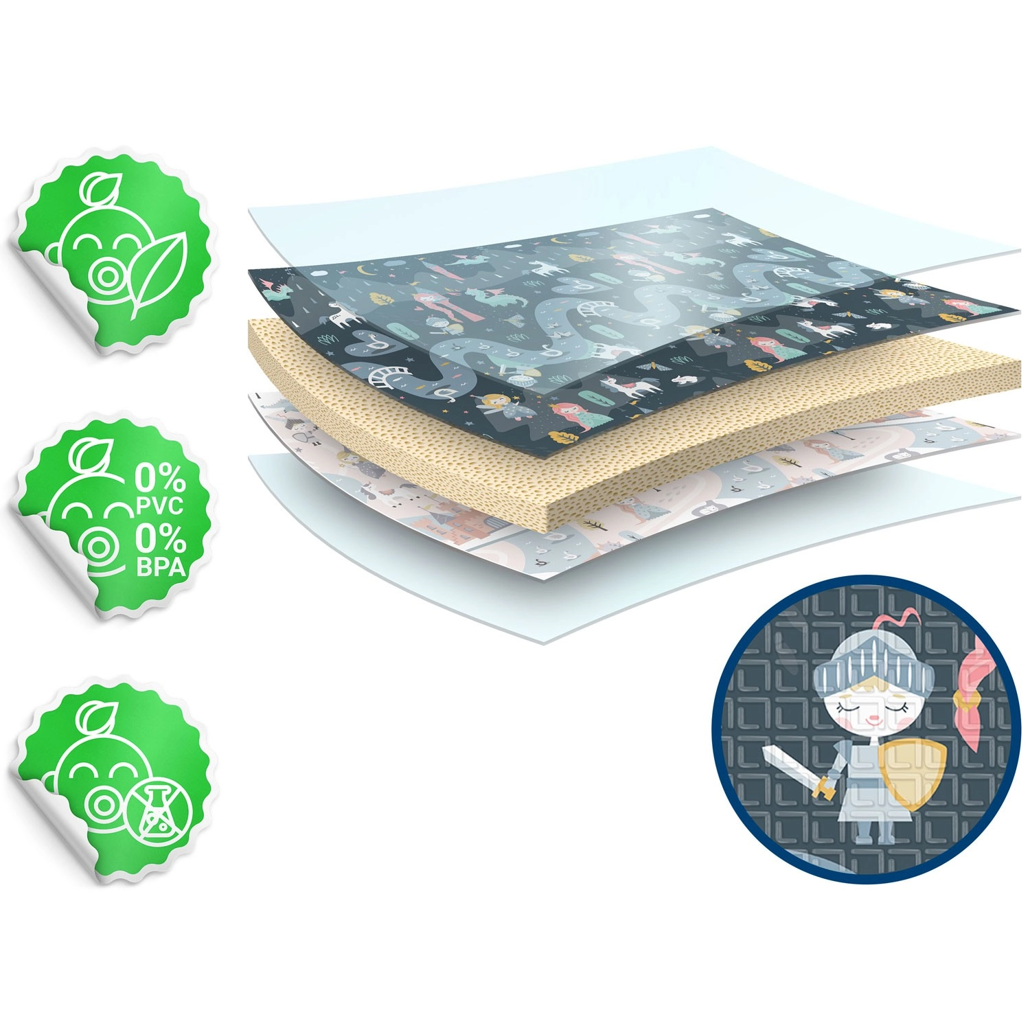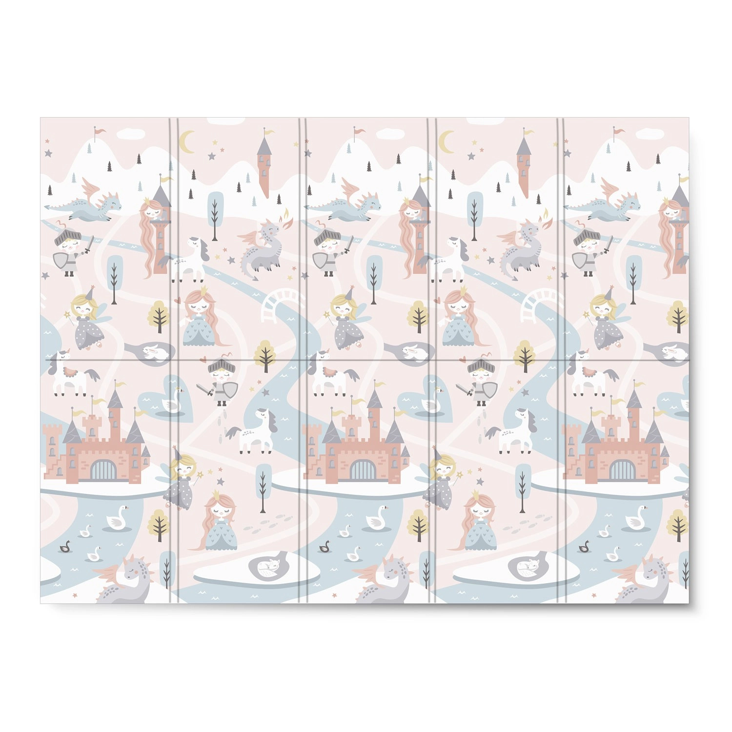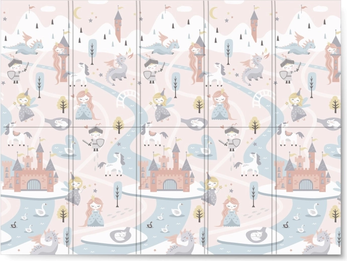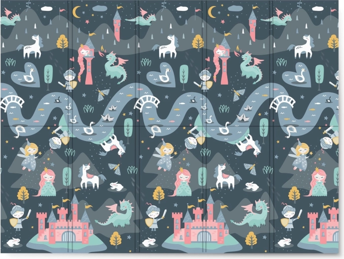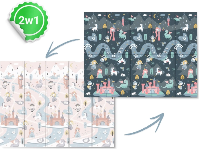Fiecare parte are un motiv diferit – o variantă mai închisă și una mai deschisă, cu castele, dragoni și unicorni. Schimbați cu ușurință aspectul camerei și stimulați imaginația copiilor în joacă și învățare.