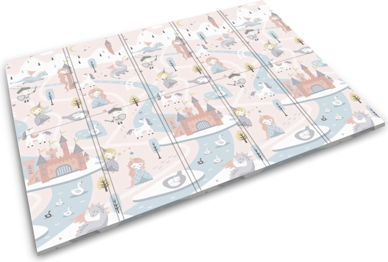 Salteaua de joacă NUKIDO, mare și ușoară, creează un loc confortabil și igienic pentru bebeluși și preșcolari. Grosimea de 1 cm din spumă XPE densă izolează eficient de frig și amortizează șocurile, fiind ideală pentru târâre, primii pași și joaca împreună. Imprimeul față-verso cu motive de basm înveselește interiorul și stimulează fantezia copiilor.
