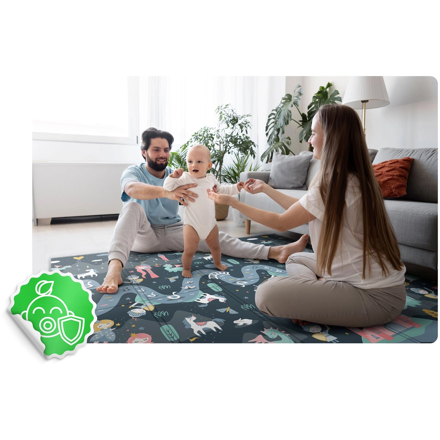Salteaua pliabilă pentru copii NUKIDO, cu dimensiunile 200 × 150 × 1 cm, oferă amortizare moale a căzăturilor, design față-verso cu ilustrații fermecătoare și curățare ușoară pentru joaca zilnică. Este impermeabilă, antiderapantă și, datorită spumei XPE fără BPA, PVC și ftalați, este sigură chiar și pentru alergici. Se pliază rapid într-o formă compactă, astfel încât o puteți depozita ușor sau lua la picnic, la antrenamente ori în călătorii.