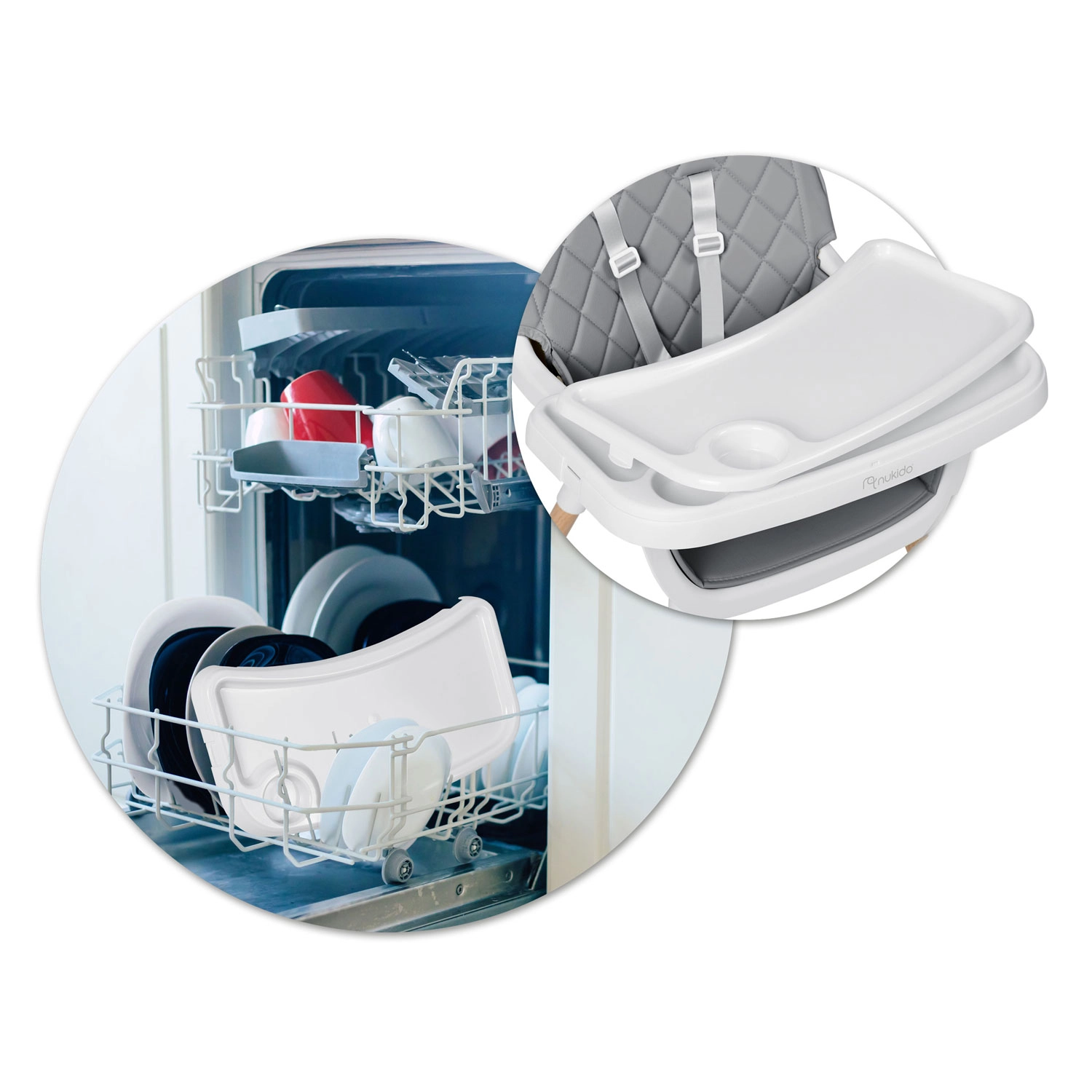Scăunelul de masă practic NUKIDO Lilo 3‑în‑1 în eleganta culoare gri îmbină confortul, siguranța și întreținerea ușoară. Oferă tăviță reglabilă și detașabilă cu margini înălțate, materiale ușor de curățat și picioare stabile cu finisaj antiderapant. Datorită centurii de siguranță în 5 puncte și conformității cu standardul EN 14988, este o alegere excelentă pentru hrănire, joacă și învățare pentru copii de la 6 luni până la 15 kg.
