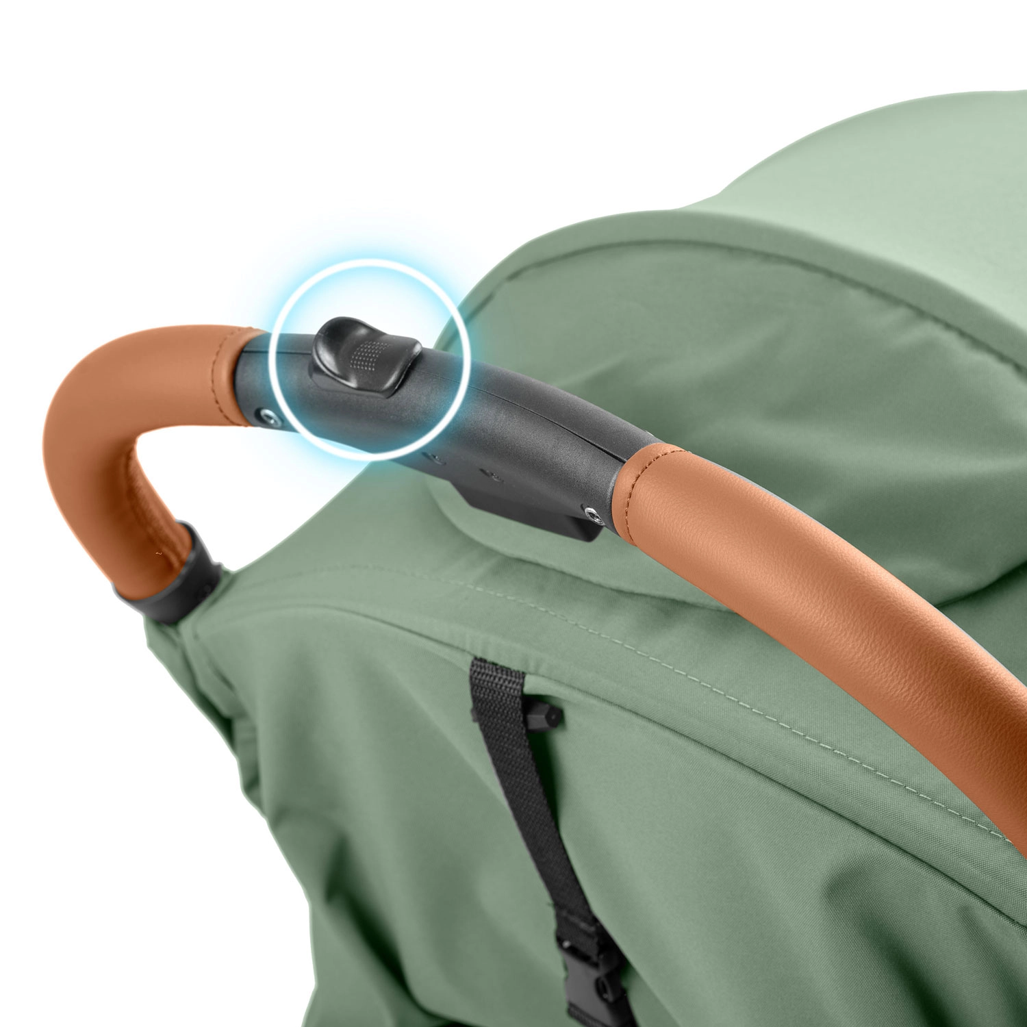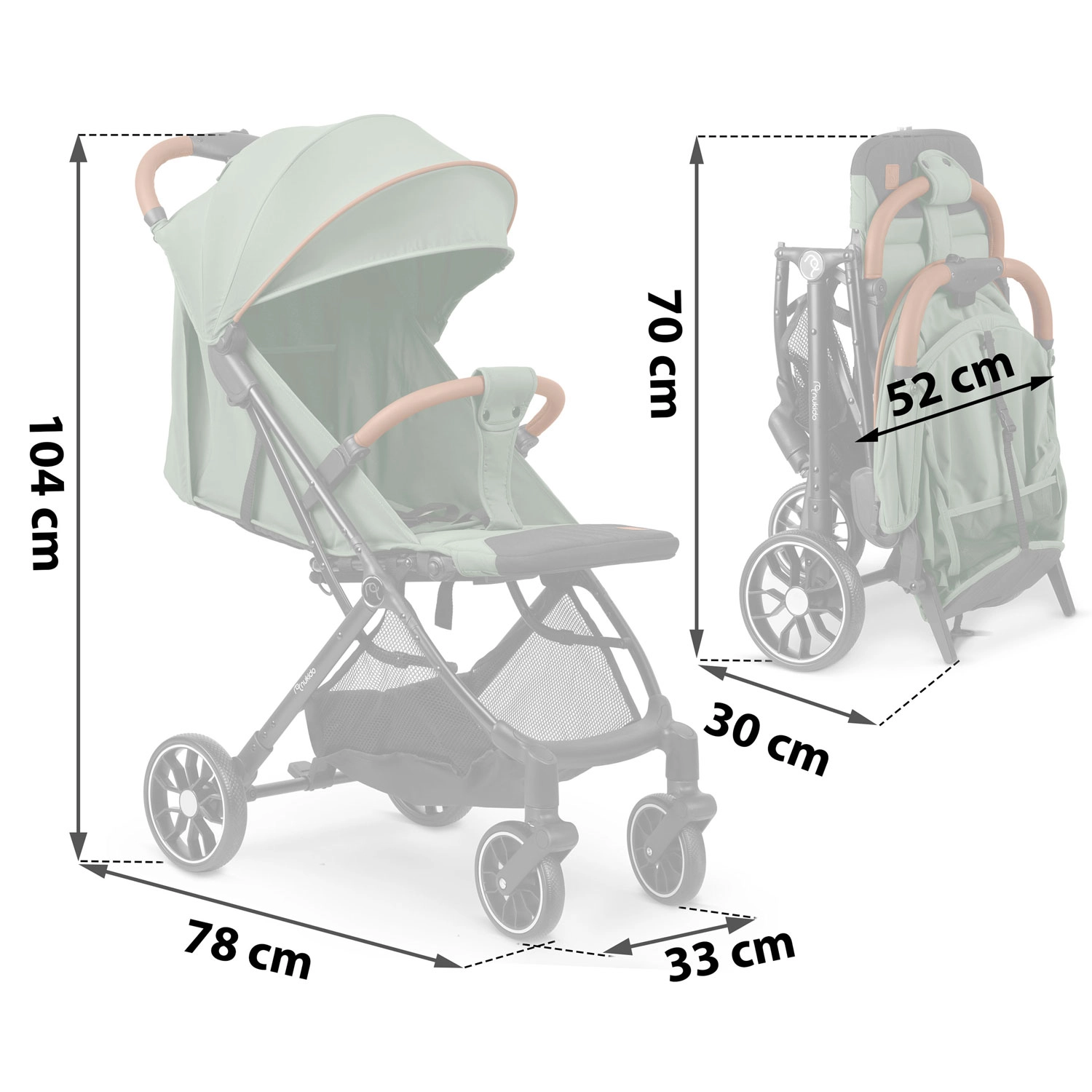 Pentru părinți există pliare rapidă cu o singură mână până la dimensiunea unui bagaj de mână, coș de depozitare sub șezut și frână centrală pe roțile din spate. Spătarul reglabil până aproape de poziția orizontală și suportul pentru picioare ajustabil asigură confort atât la somn, cât și la explorarea lumii.