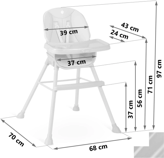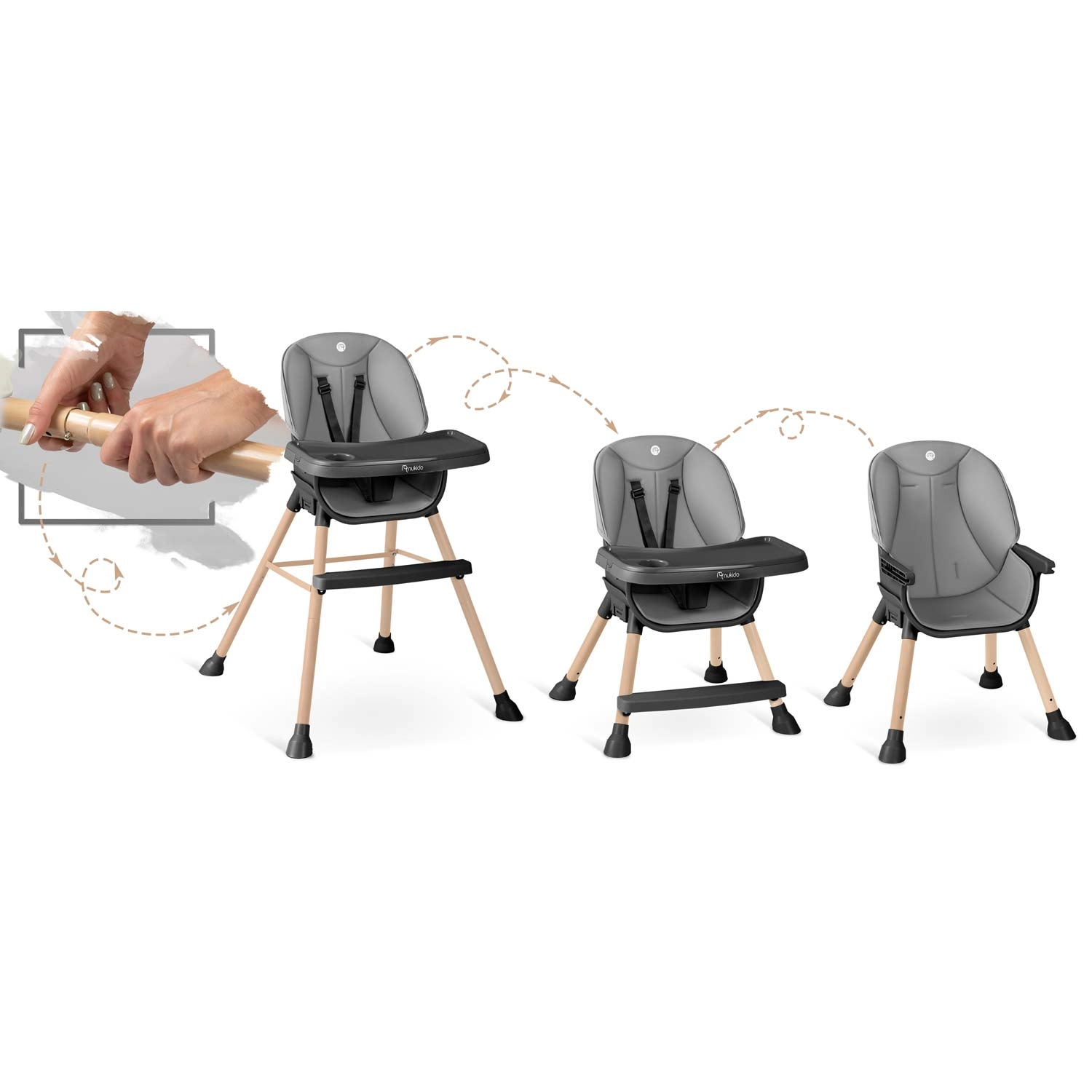 - Utilizare 3‑în‑1: scaun înalt / scaun jos cu tăviță / fotoliu pentru copii
