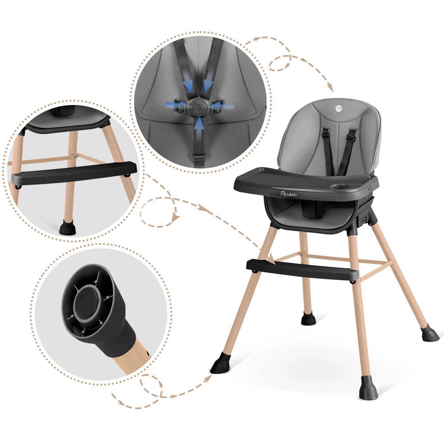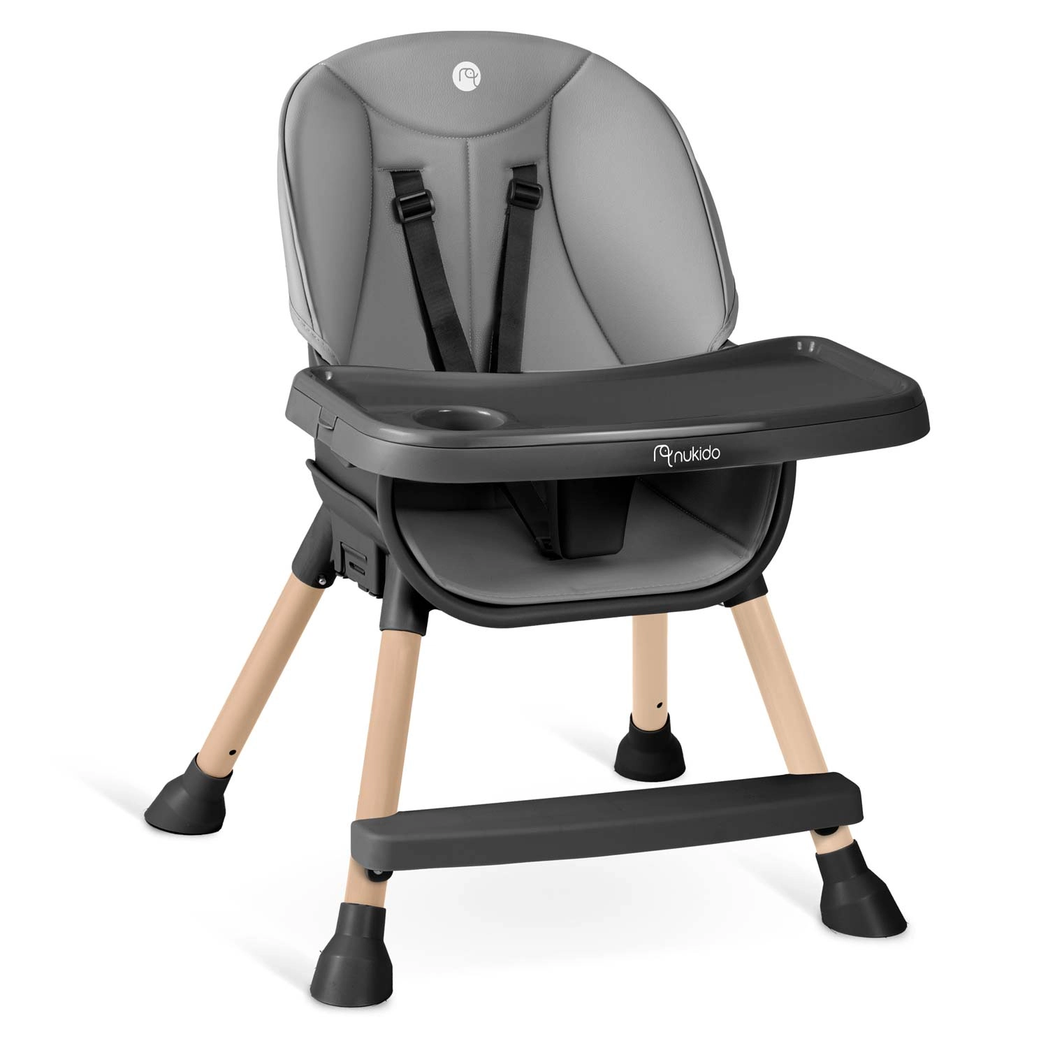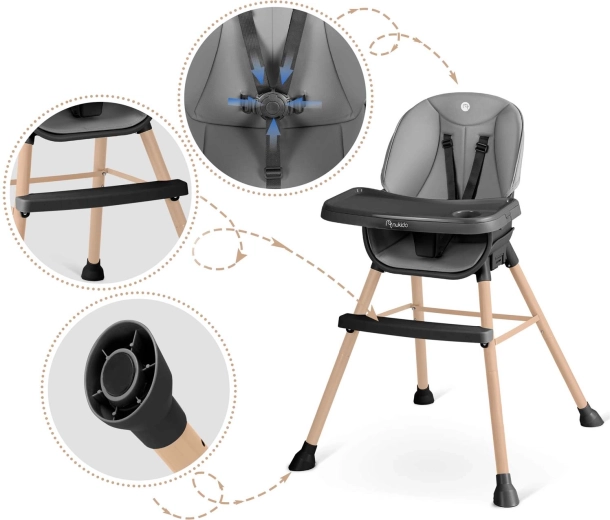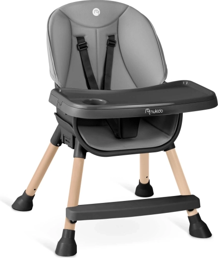 NUKIDO Tilo este un scaun de masă 3‑în‑1 versatil, pe care îl adaptezi ușor nevoilor actuale: ca scaun înalt de masă, fotoliu jos cu tăviță sau scăunel separat pentru joacă. Șezutul ergonomic susține postura corectă, iar picioarele robuste cu aspect de lemn și capete antiderapante asigură stabilitate fermă pe orice suprafață.