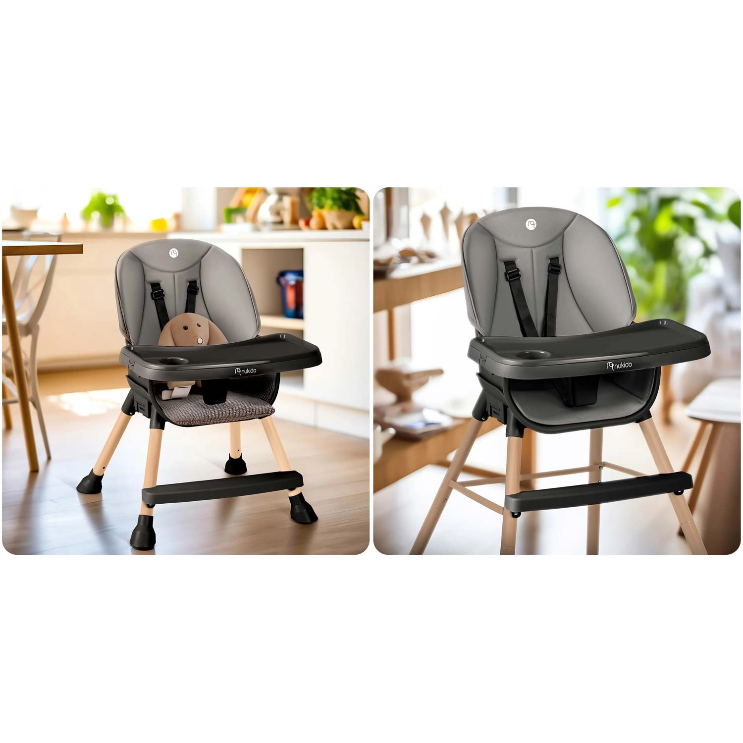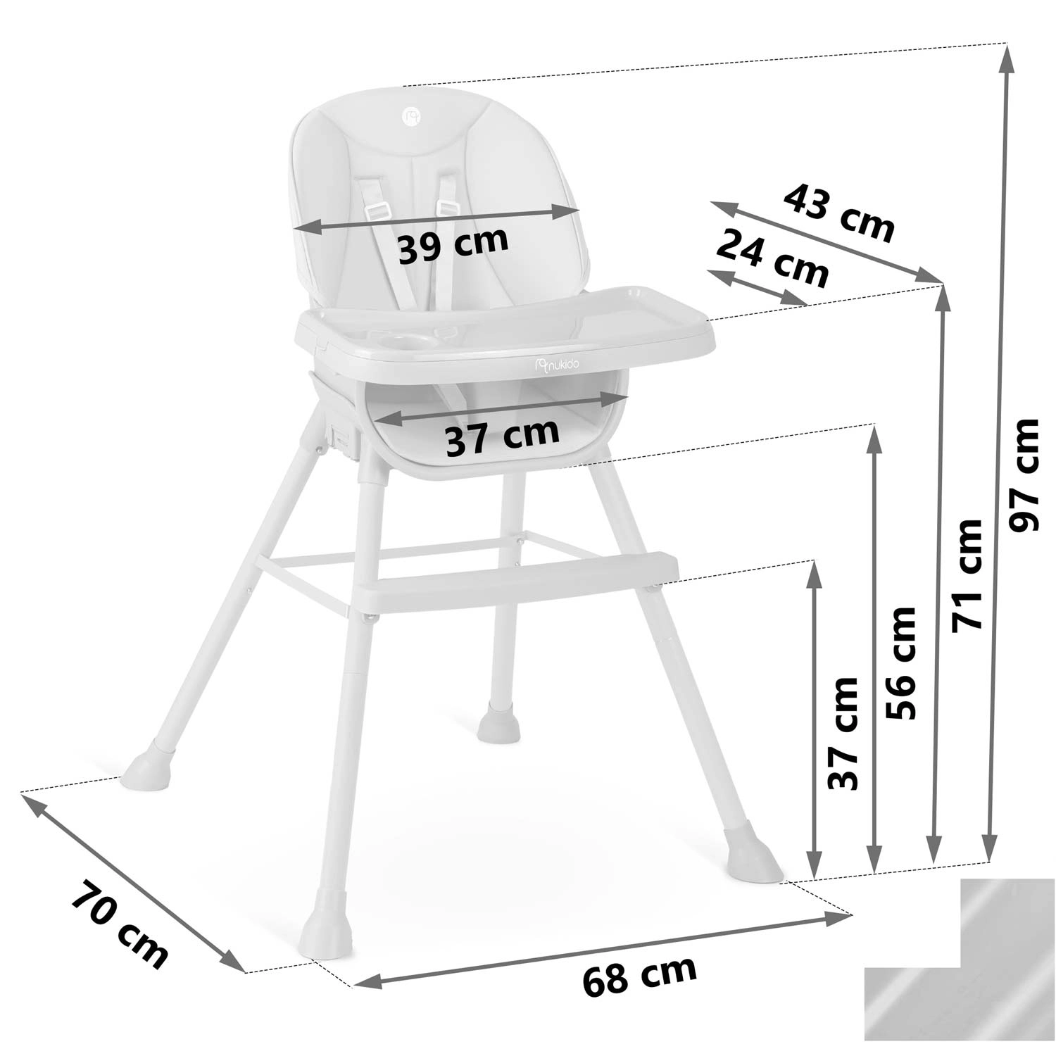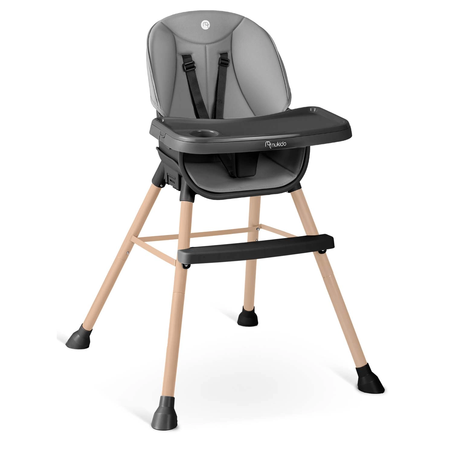 NUKIDO Tilo este un scaun de masă 3‑în‑1 versatil, pe care îl adaptezi ușor nevoilor actuale: ca scaun înalt de masă, fotoliu jos cu tăviță sau scăunel separat pentru joacă. Șezutul ergonomic susține postura corectă, iar picioarele robuste cu aspect de lemn și capete antiderapante asigură stabilitate fermă pe orice suprafață.