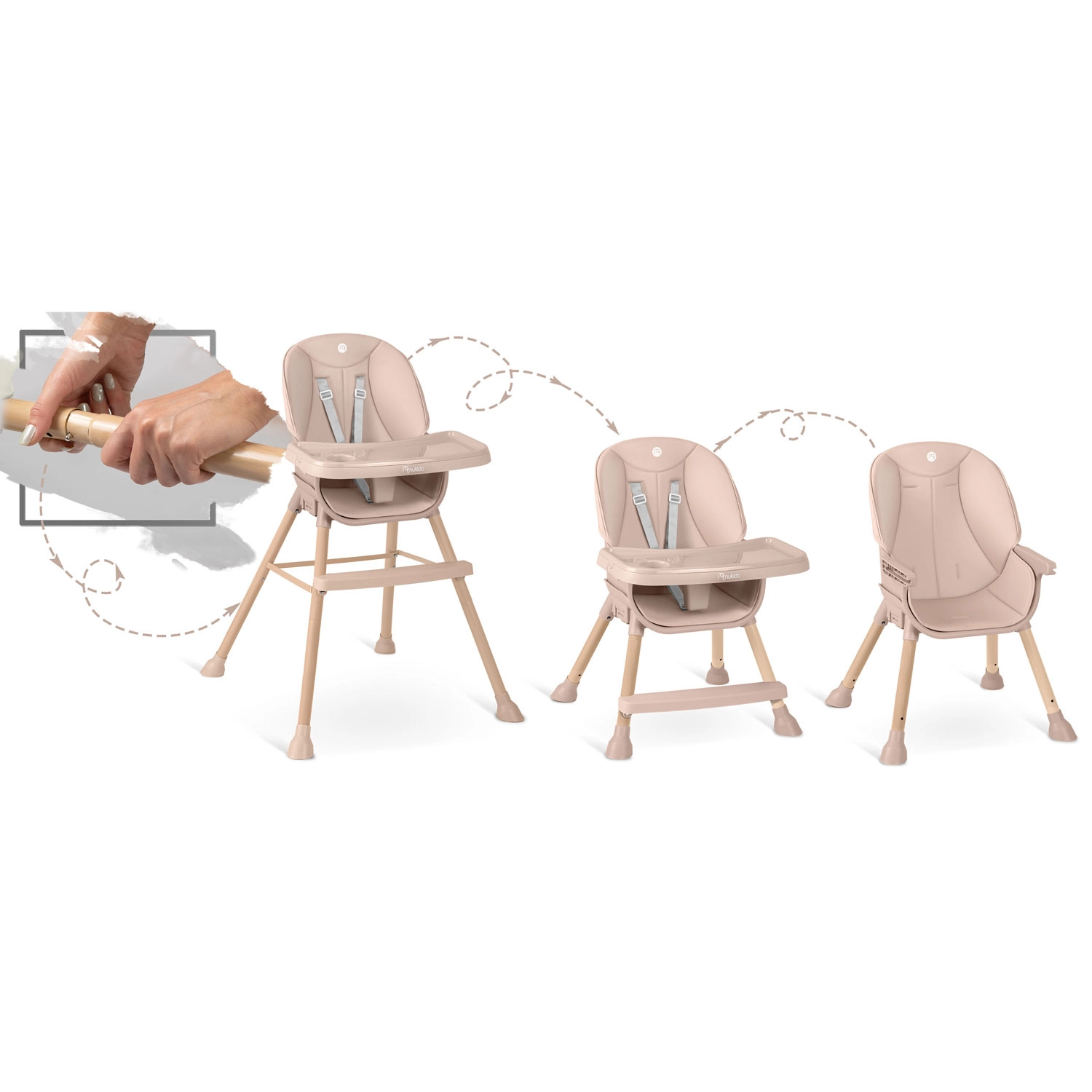 Un singur scaun, trei moduri de utilizare. Adaptează NUKIDO Tilo vârstei și activităților copilului – de la hrănire până la joacă la masă.