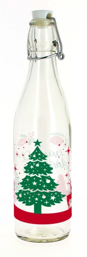 Sticlă practică din sticlă, cu volum de 1 l și închidere tip patent fiabilă, ideală pentru lichior de ouă de casă, lichioruri, siropuri sau limonade. Datorită etanșării ferme, păstrează conținutul proaspăt și sigur închis, iar forma elegantă se potrivește perfect în orice bucătărie și ca un cadou.