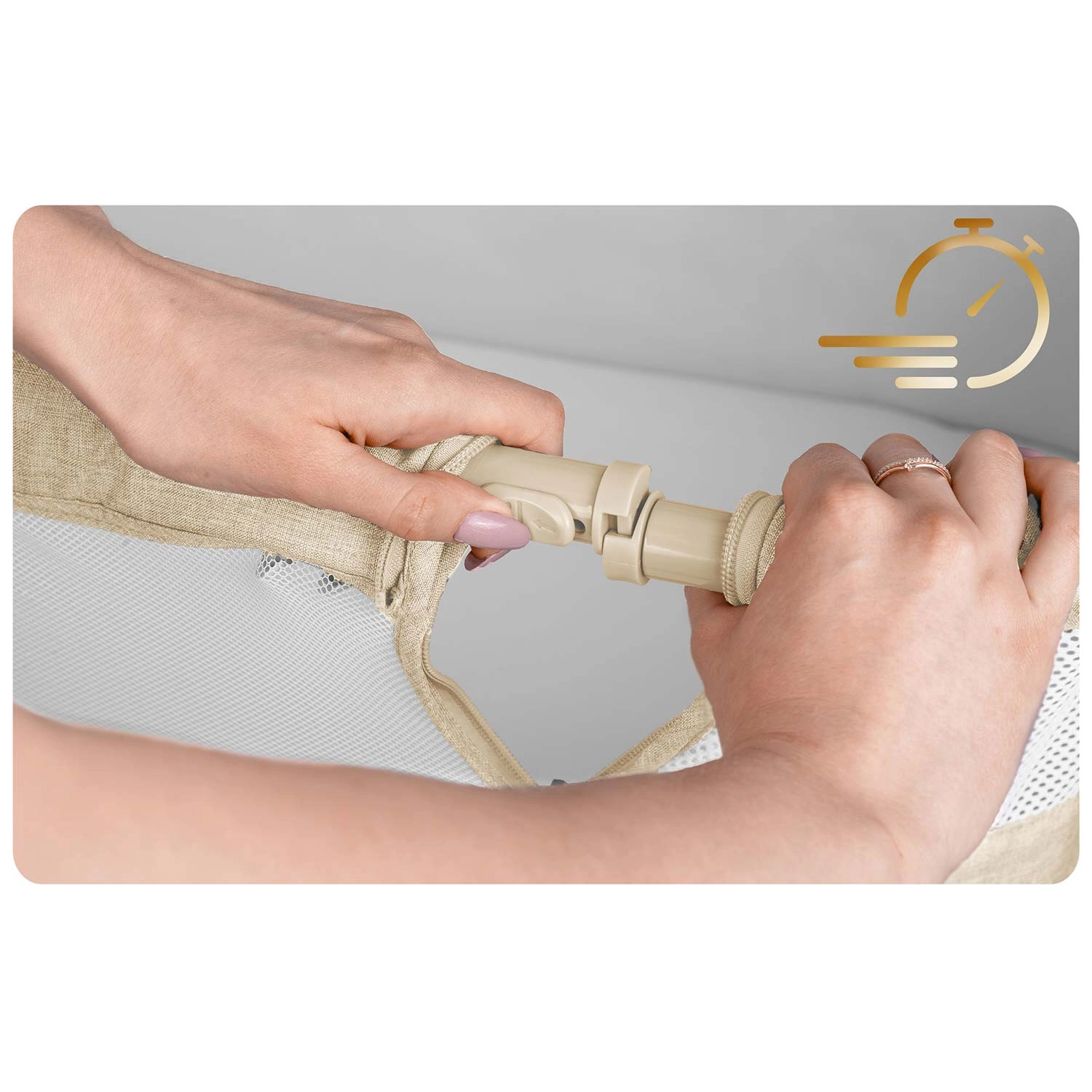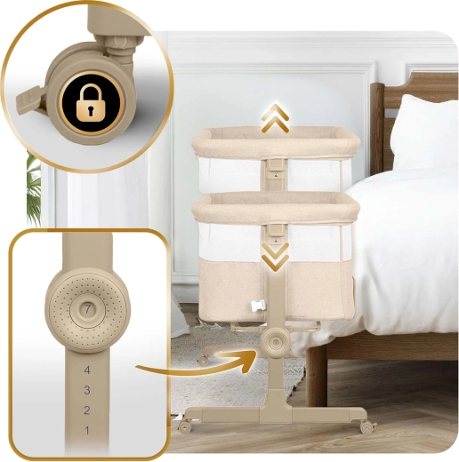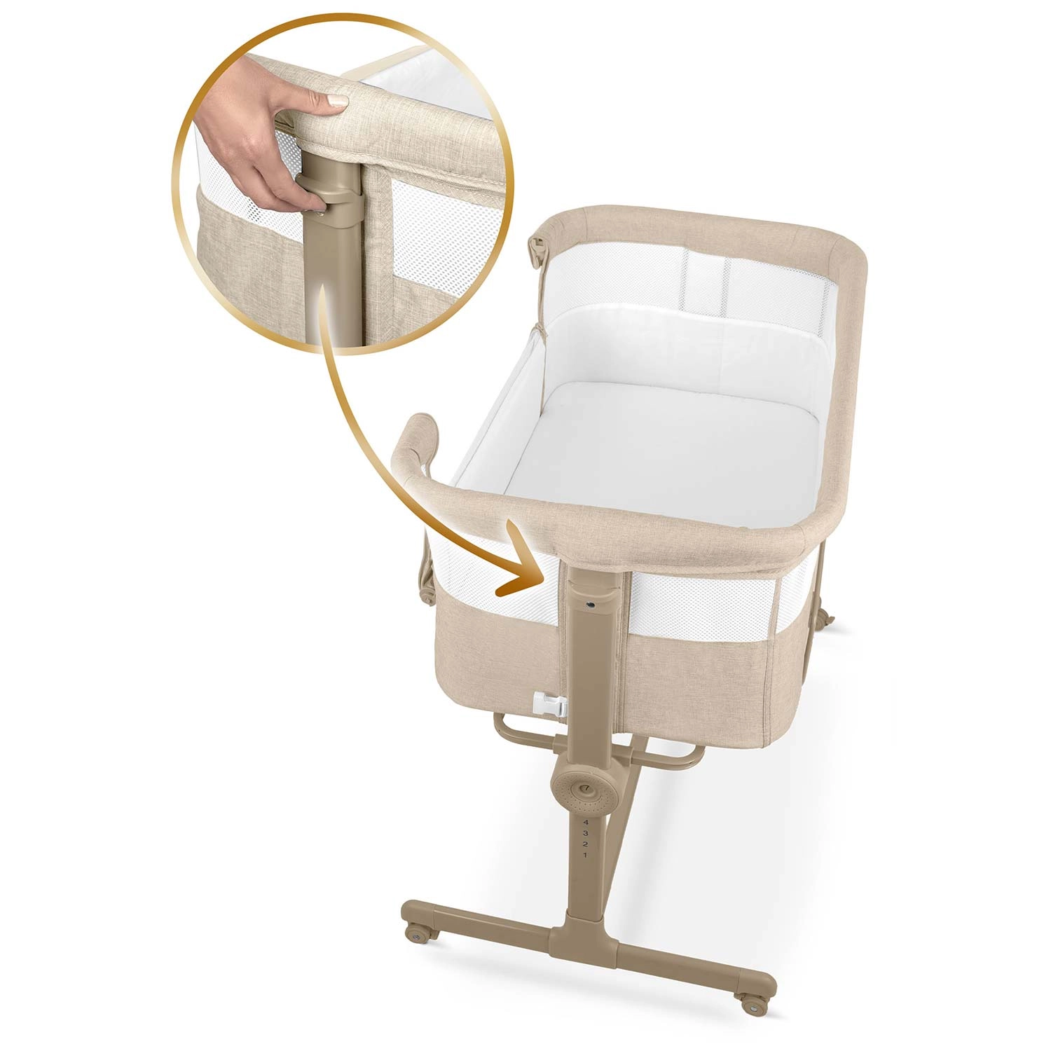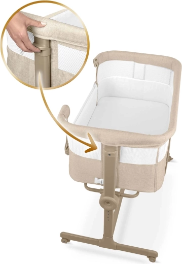 Ambele părți pot fi reglate separat. Potrivești ușor înălțimea cu patul părinților sau creezi o ușoară înclinare pentru confort sporit al copilului.