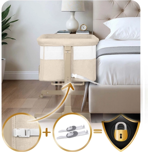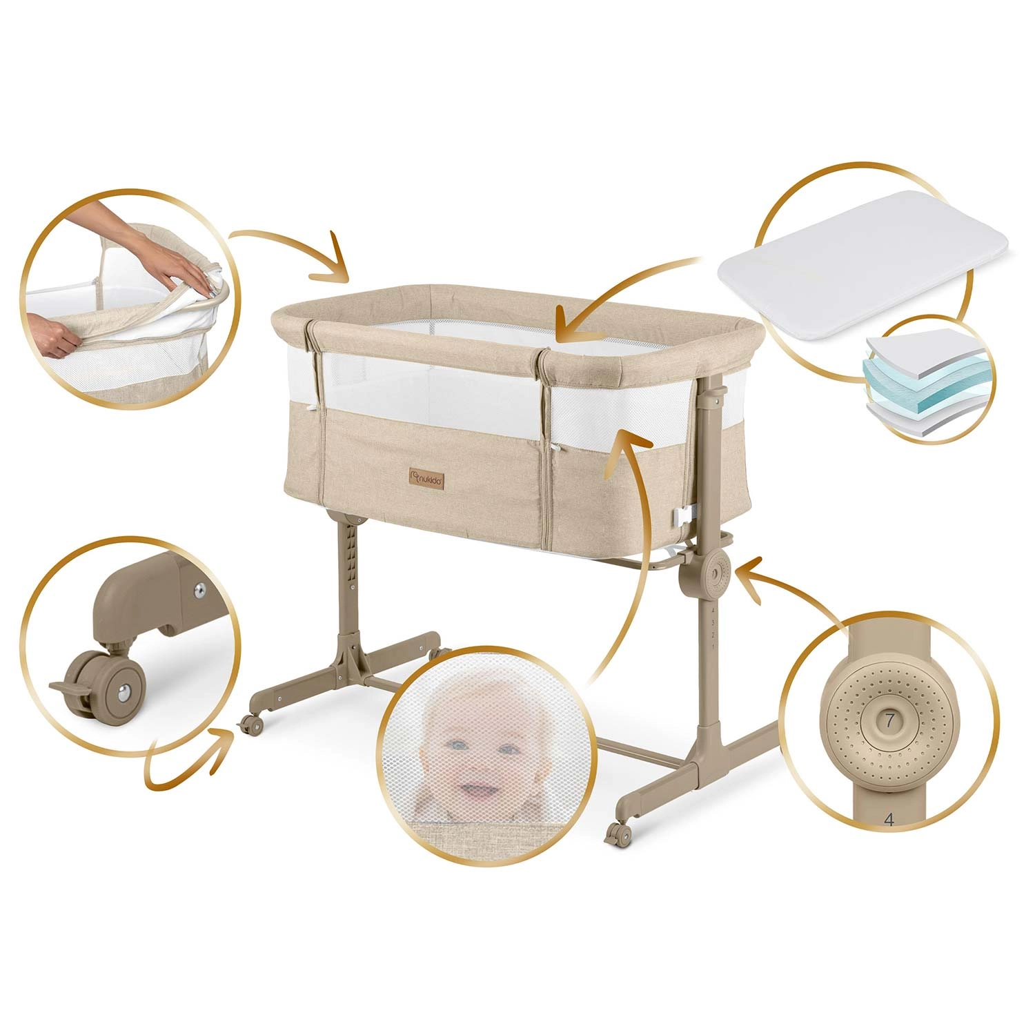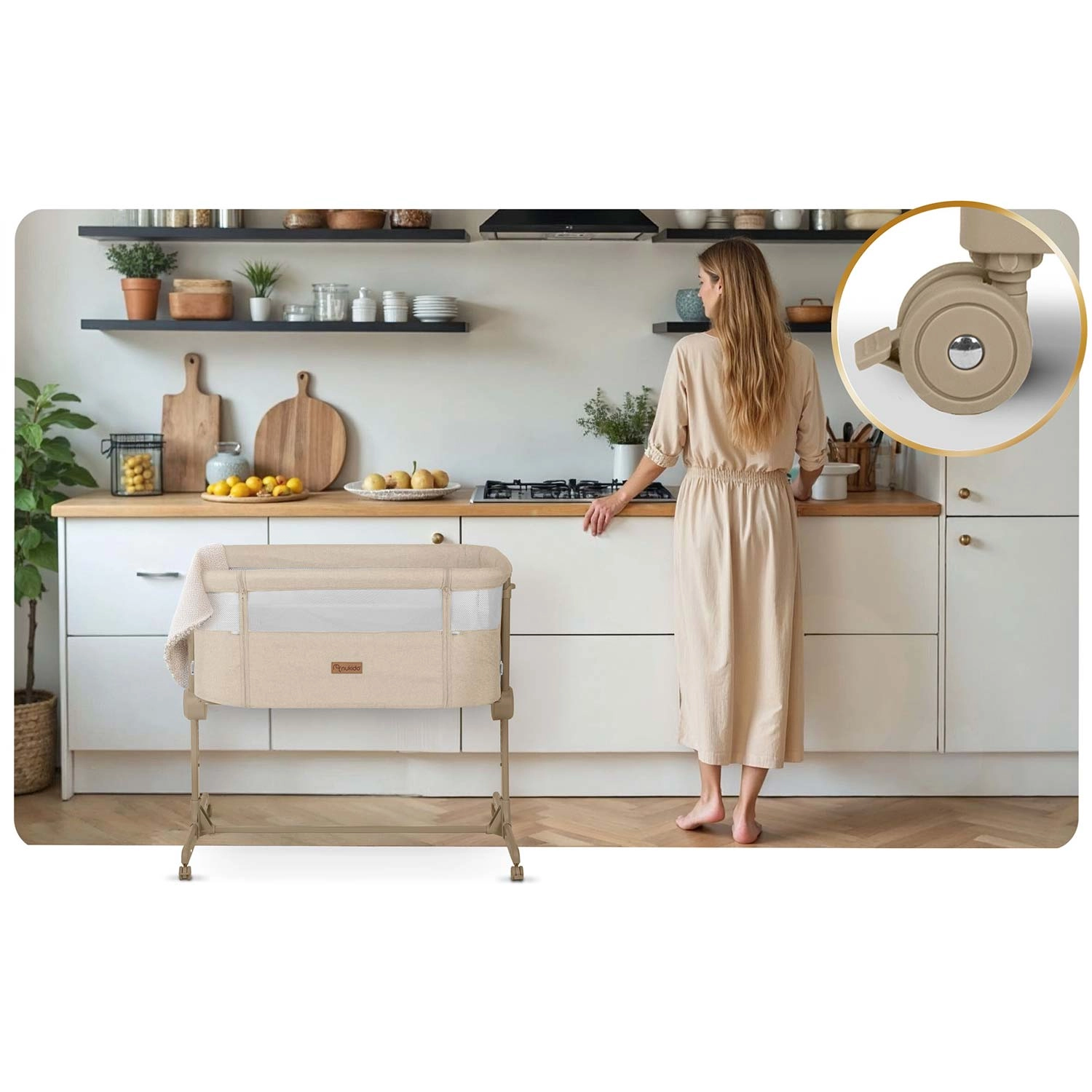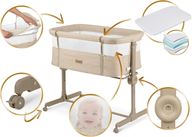 Laterală deschizabilă pentru alăptare și atașare ușoară pe timp de noapte, plasă respirabilă pentru o mai bună circulație a aerului și vizibilitate asupra bebelușului – nopți mai liniștite pentru întreaga familie.
