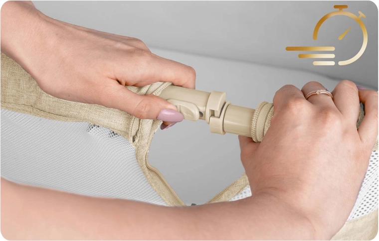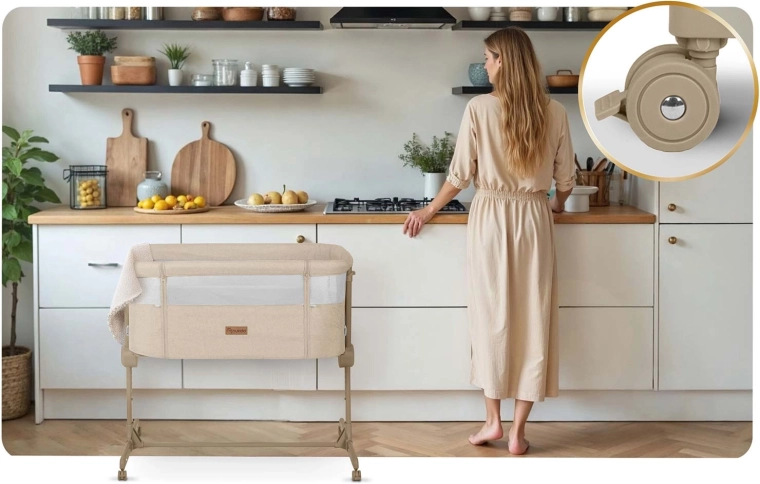 Pătuțul se pliază în câteva clipe și, datorită roților cu frână, îl muți acolo unde ai nevoie – în dormitor, living sau lângă colțul copilului. Panoul lateral detașabil cu fermoar exterior facilitează accesul la bebeluș și previne deschiderea accidentală din interior. Salteaua cu husă lavabilă ajută la menținerea curățeniei perfecte zilnic.