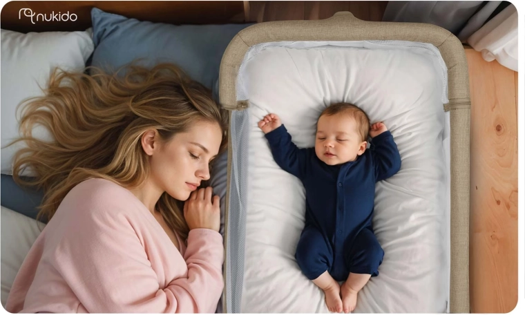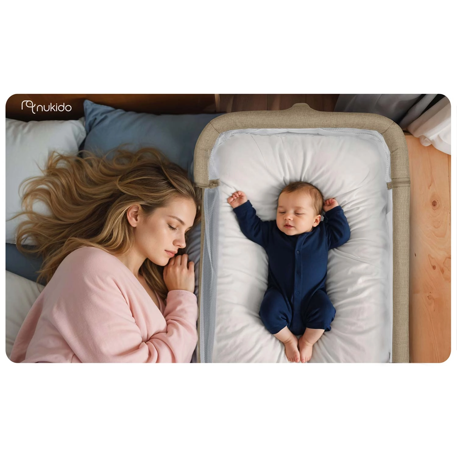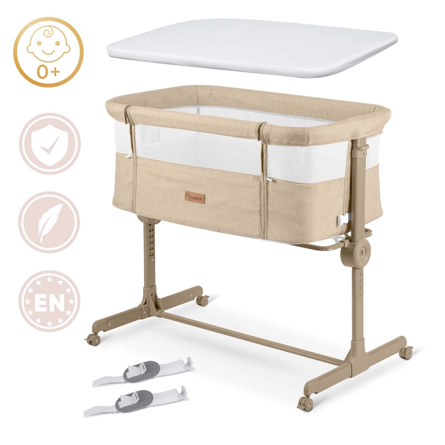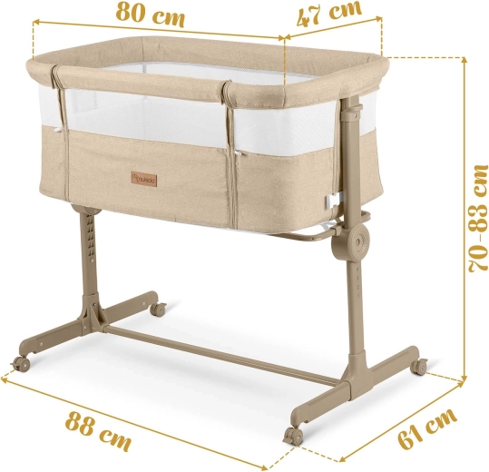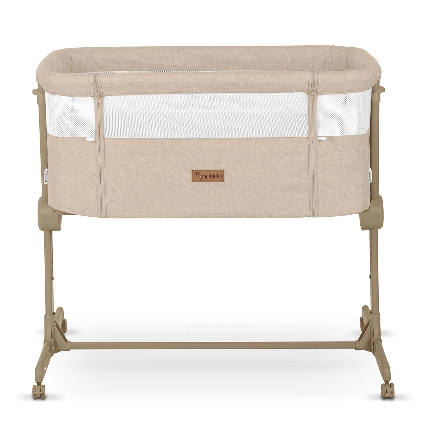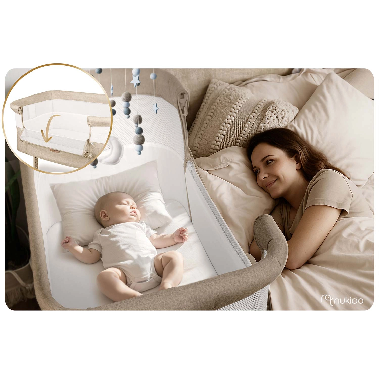 Fixați bebelușul în siguranță lângă patul vostru și bucurați-vă de nopți mai liniștite. Pătuțul lateral NUKIDO oferă o structură stabilă, pereți din plasă respirabilă pentru o mai bună circulație a aerului și o vizibilitate excelentă asupra copilului. Datorită reglării independente pe ambele părți a înălțimii potrivești cu ușurință nivelul cu salteaua părinților sau creezi o înclinare ușoară, utilă de exemplu în cazul refluxului.