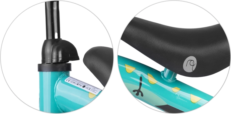 Șaua moale, bine capitonată, cu reglare ușoară a înălțimii, crește odată cu copilul și asigură confort la fiecare plimbare.