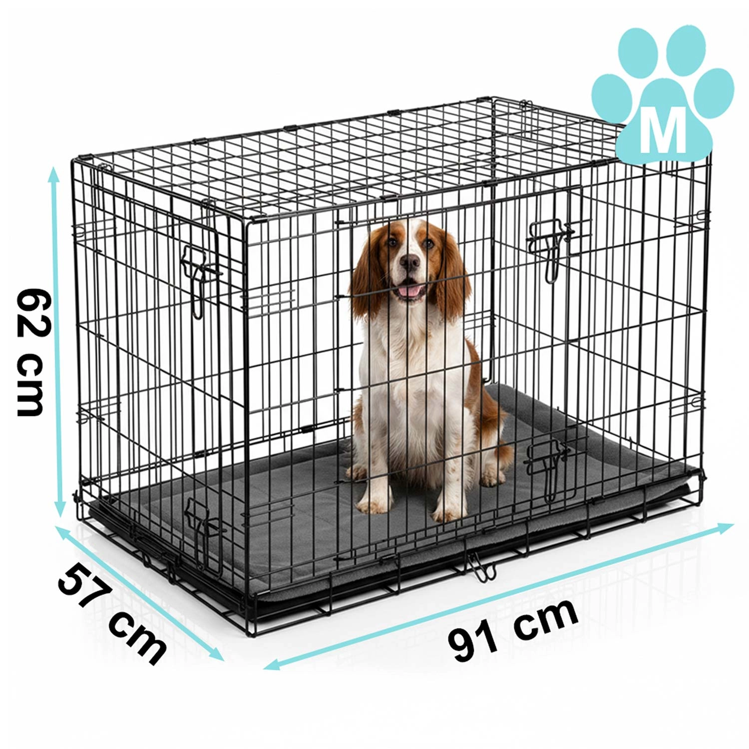 Această cușcă metalică pentru câini, mărimea M, combină o construcție solidă din oțel cu detalii atent gândite pentru utilizarea zilnică. Ușile laterale și frontale duble cu zăvoare fiabile facilitează amplasarea în interior și asigură o închidere sigură. Tăvița din plastic detașabilă permite curățarea rapidă și menținerea unei igiene perfecte. În pachet găsești și o saltea confortabilă, care sporește confortul la odihnă.