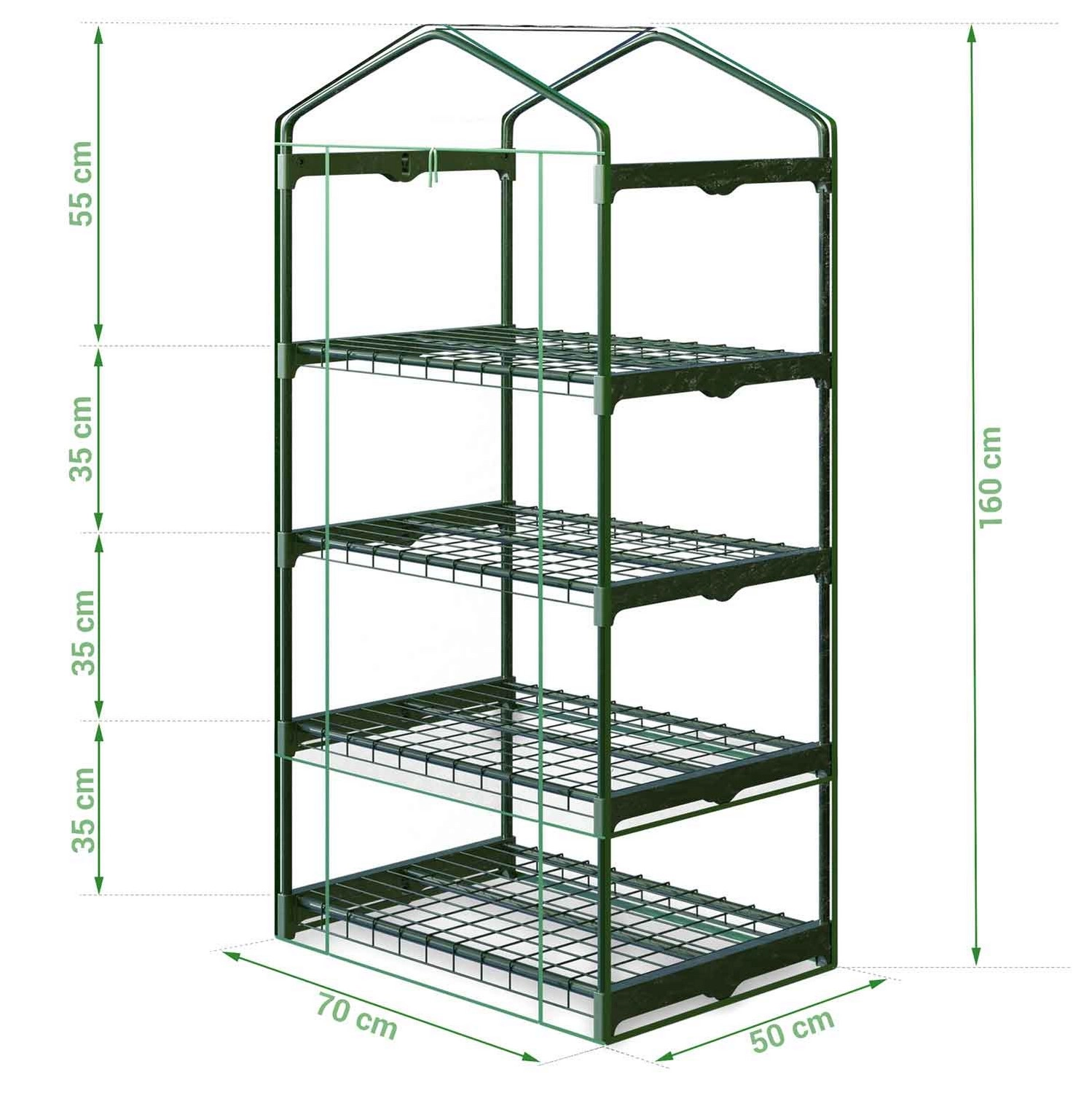 Seră compactă cu rafturi de la marca Plonos, cu dimensiunile 70 × 50 × 160 cm, protejează plantele de intemperii și prelungește sezonul de vegetație. PVC transparent 110 g/m² lasă să treacă lumina și căldura, cadrul din oțel asigură stabilitate, iar cele două fermoare de pe ușă permit aerisire comodă și acces facil. Ideală pentru balcon, terasă și grădini mici.