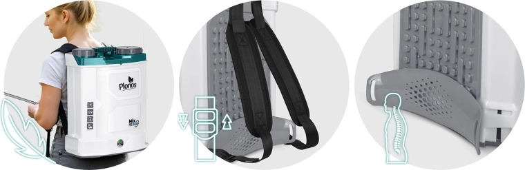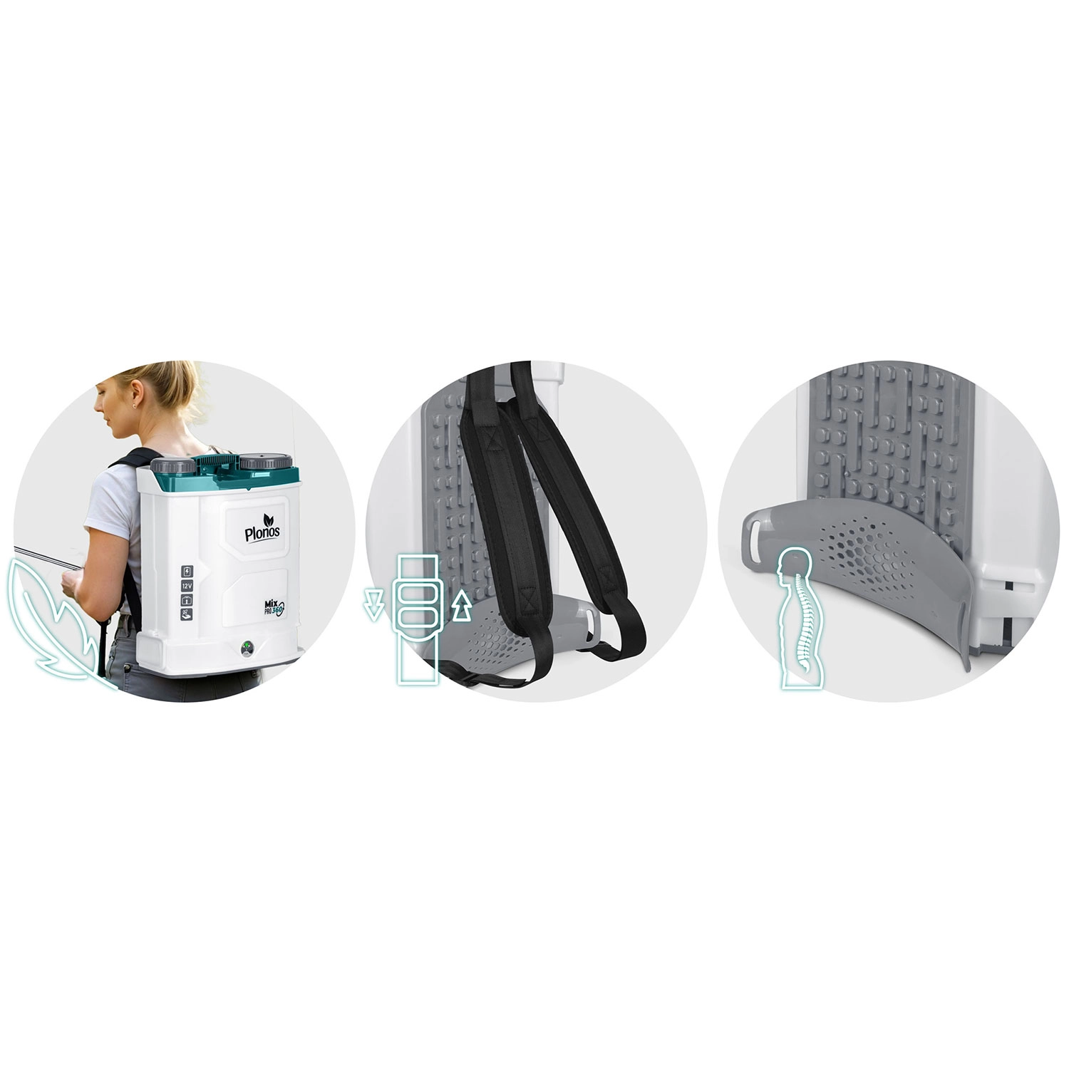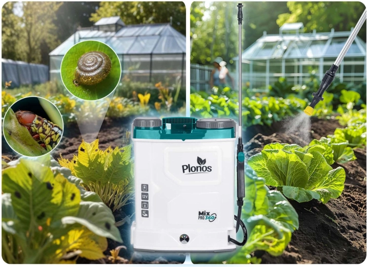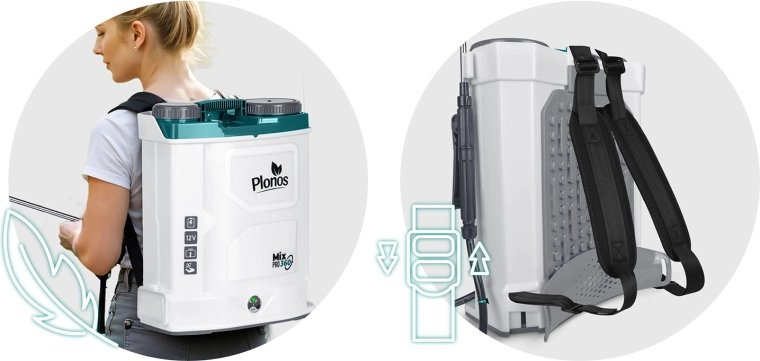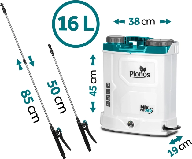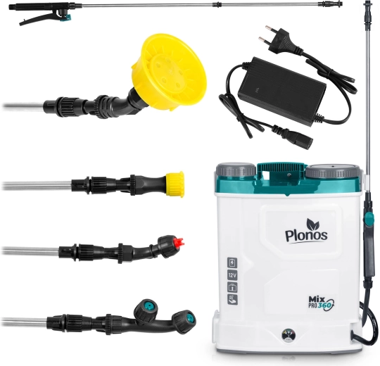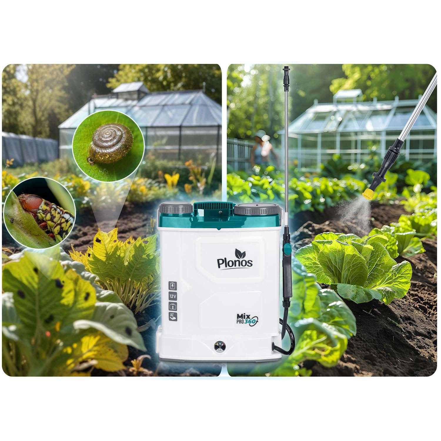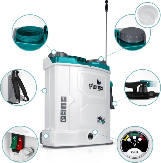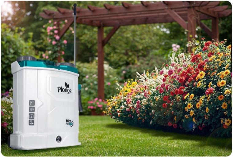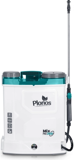 Pompa de stropit PLONOS Mix Pro 360 este un ajutor de încredere pentru protecția și nutriția plantelor în straturi, peluze și livezi. Sistemul de amestecare încorporat menține soluția de lucru omogenă, crescând eficiența stropirii și eliminând înfundarea duzelor. Bateria 12V/8Ah oferă funcționare silențioasă și autonomie de până la 9 ore cu o singură încărcare, astfel încât puteți gestiona cu ușurință suprafețe mai mari.