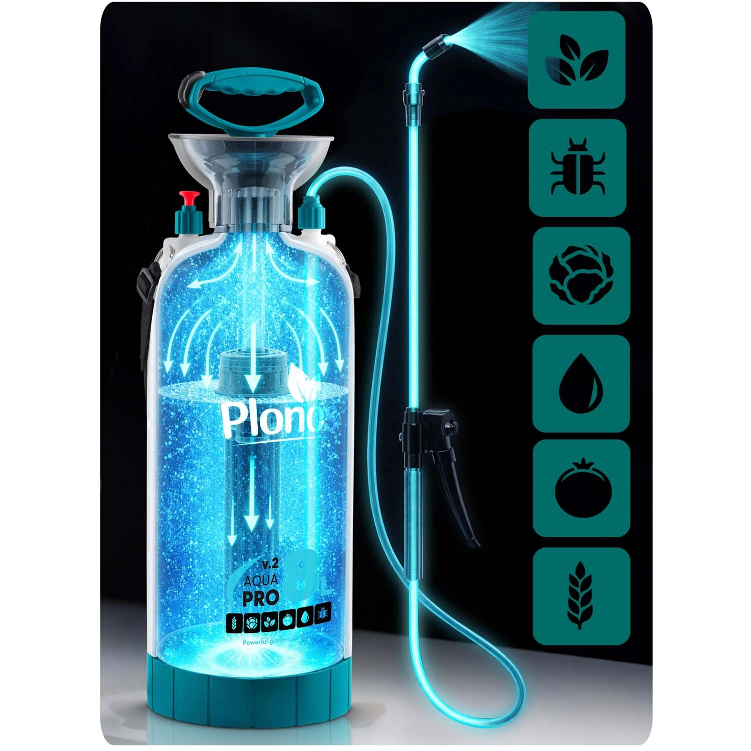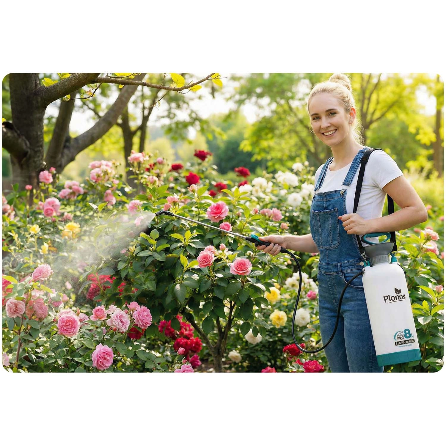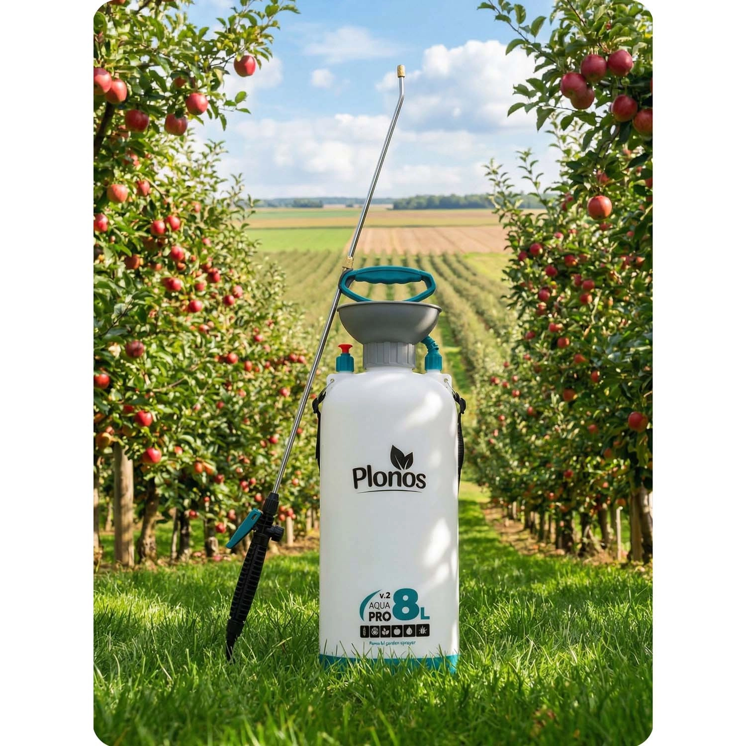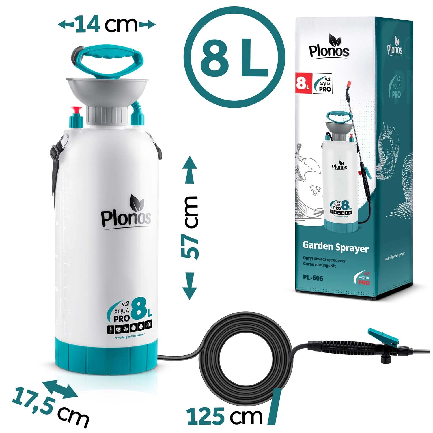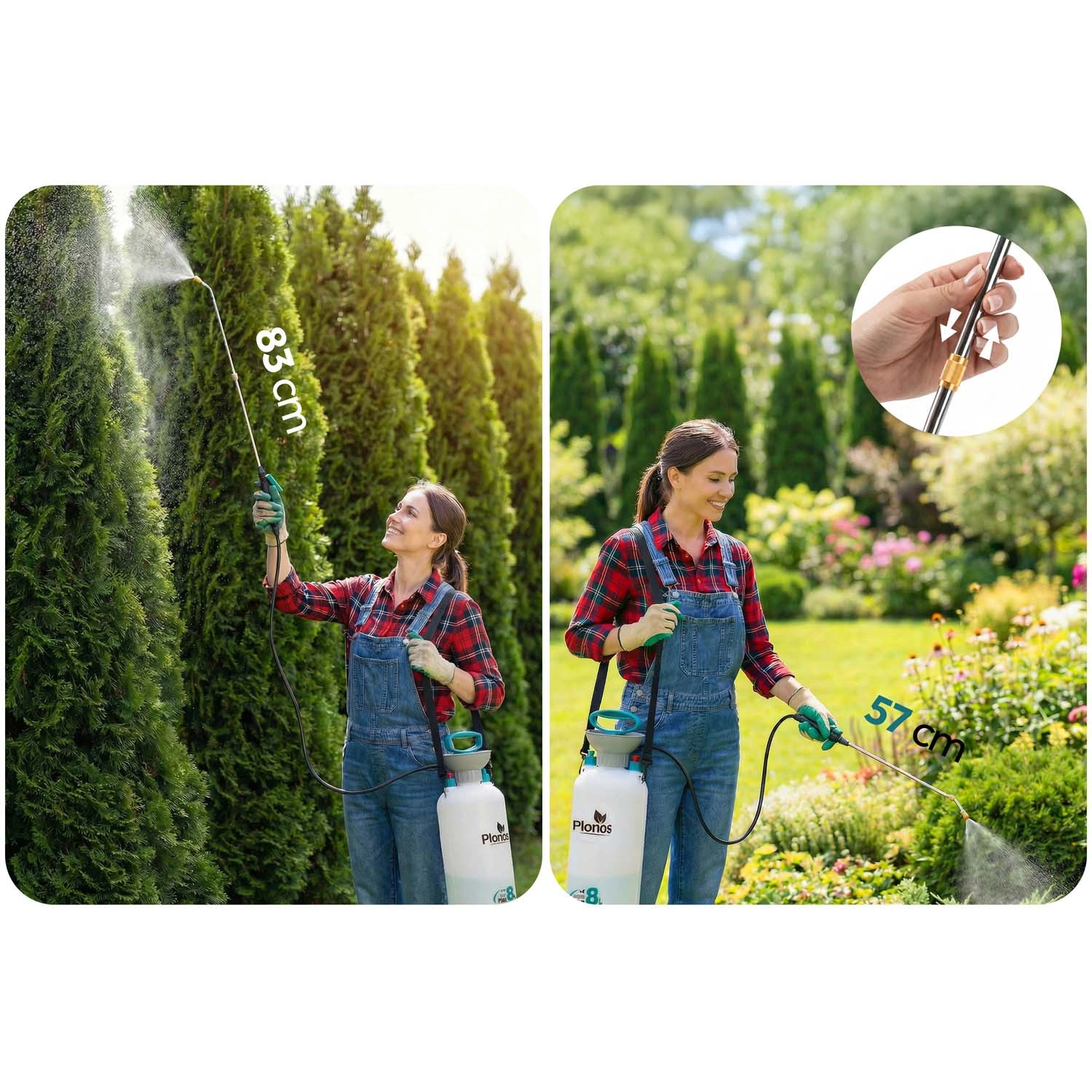 Pulverizatorul Plonos 8 l este un ajutor de încredere pentru munca zilnică de grădinărit. Datorită materialelor de calitate – oțel inoxidabil, alamă și PE rezistent – face față substanțelor chimice și utilizării îndelungate. Presiunea controlată de 2,76 bar distribuie uniform lichidul și garantează rezultate precise la pulverizarea florilor, legumelor, arbuștilor și pomilor.