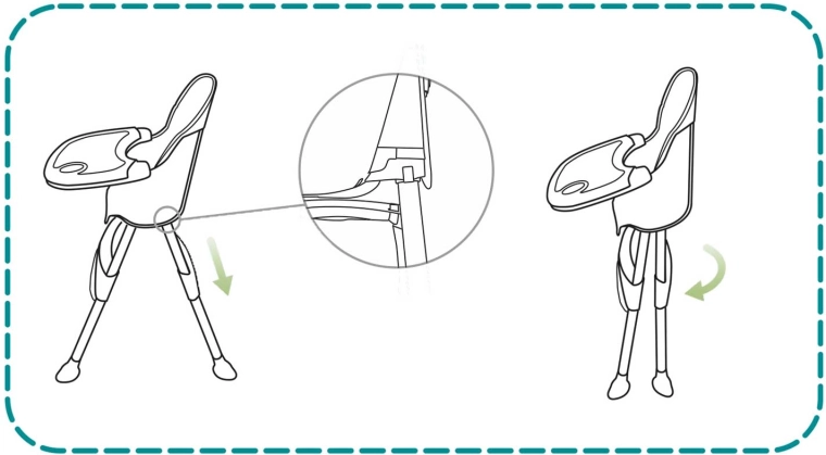- Depozitare compactă: pliere rapidă prin prinderea picioarelor din spate, economisește spațiu.