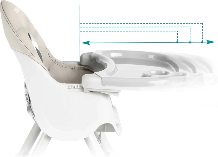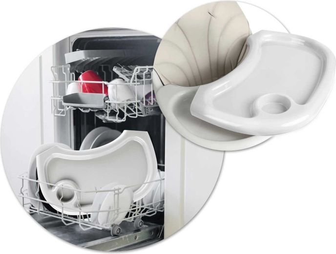 - Tăviță reglabilă: 3 poziții, detașabilă, margini înălțate pentru mai puțină dezordine.