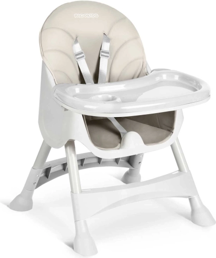 - Cresște odată cu copilul (3‑în‑1): scaun înalt, booster/fotoliu mai jos.