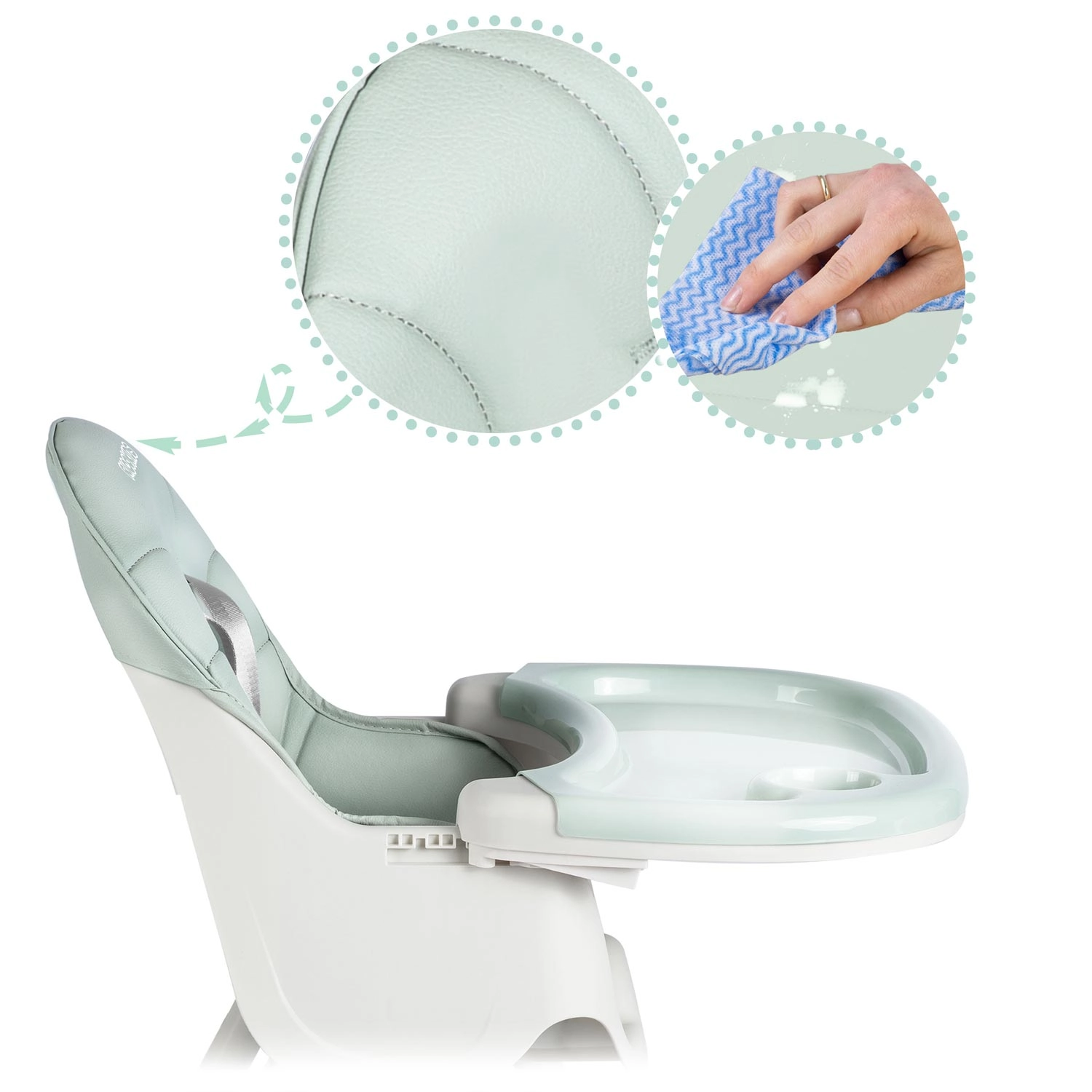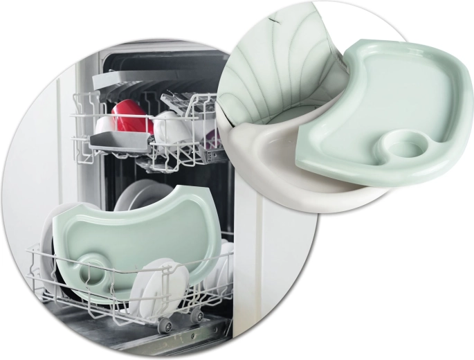 Tăvița cu margini ridicate reține vărsările, iar inserția detașabilă se clătește ușor sau se spală în mașina de spălat vase. Șezutul se șterge simplu cu o cârpă umedă.