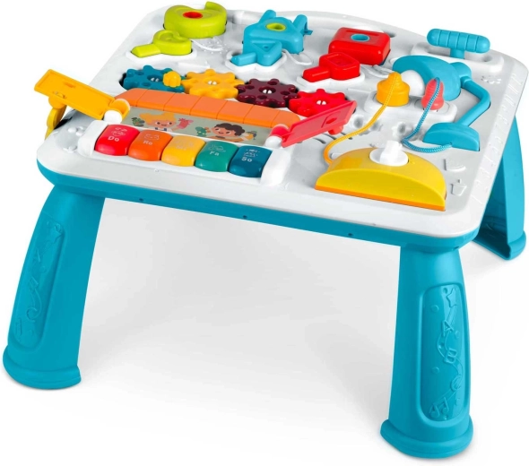 Părinții vor aprecia posibilitatea de oprire completă și reglarea volumului pe două trepte. Măsuța are o construcție stabilă, robustă și colorată, cu montaj rapid și ușor. Este ideală ca dar pentru copii de la 12 luni, care se vor juca ore întregi și, în același timp, vor învăța culorile, numerele și relația cauză–efect.