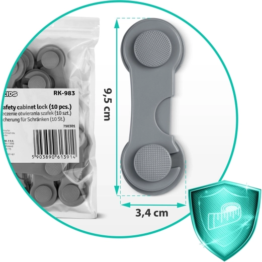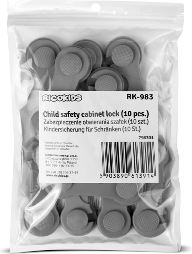 Asigurați-vă locuința pentru cei mici. Lacătele de siguranță autoadezive RICOKIDS împiedică eficient deschiderea dulapurilor, sertarelor, frigiderului, cuptorului cu microunde și a capacului de WC. Construcția simplă din două plăcuțe, cu adeziv 3M de calitate, ține ferm, dar poate fi îndepărtată ușor, la nevoie, fără a deteriora mobila.