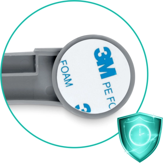 Montajul se face în câteva clipe: degresați suprafața, desprindeți folia și apăsați ferm. Plasticul durabil, cu stabilizare UV, nu își schimbă culoarea, încuietorile sunt silencioase și au un aspect estetic în orice interior. Ambalajul igienic de 10 bucăți acoperă mai multe zone din locuință.