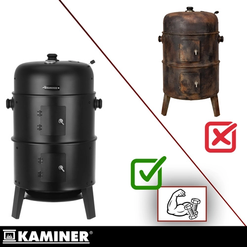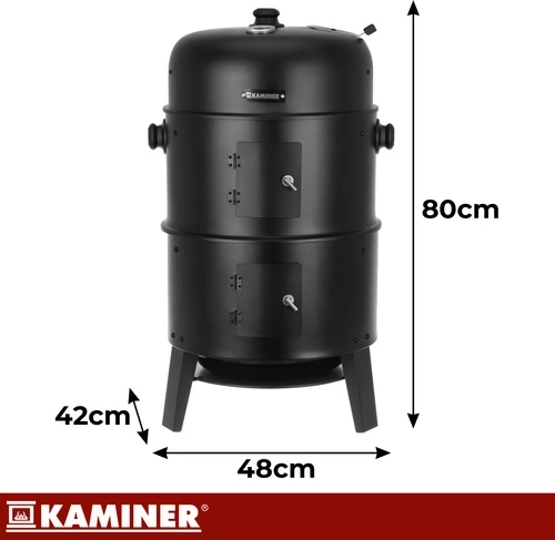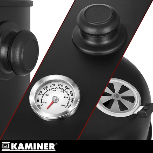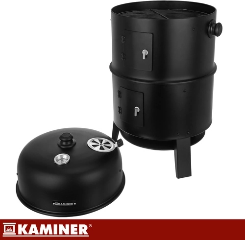 Descoperă grătarul universal KAMINER 3‑în‑1, care combină grătarul, afumarea și vatra de foc într-un singur dispozitiv. Datorită termometrului din capac, reglării fluxului de aer și celor două grătare cromate de 38 cm, pregătești fripturi suculente și mezeluri aromate cu efort minim. 8 cârlige pentru afumare, construcția din oțel de 0,9 mm și curățarea ușoară îl fac alegerea ideală pentru orice BBQ.