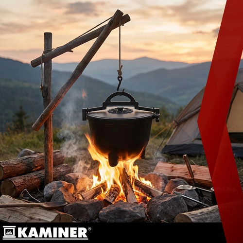 De ce să alegi KAMINER: combinație între fonta tradițională și întreținerea ușoară a emailului, accesorii gândite practic, inclusiv perie și set de montaj, și o execuție de calitate pentru ani de gătit fără griji în aer liber.