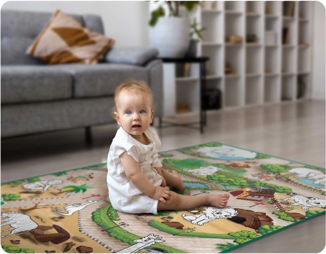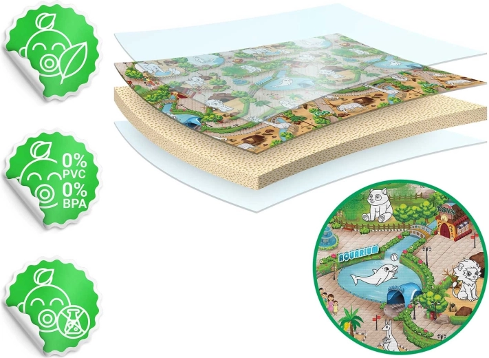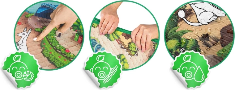 Datorită spumei EVA de calitate, covorașul este moale, rezistent și impermeabil, cu margini tivite pentru o durată de viață mai mare. Asigură izolație termică față de podea și nu reține praful sau acarienii, fiind potrivit și pentru alergici. Se rulează și se depozitează ușor; îl poți folosi acasă în cameră, pe gresie, pe terasă sau la picnic.
