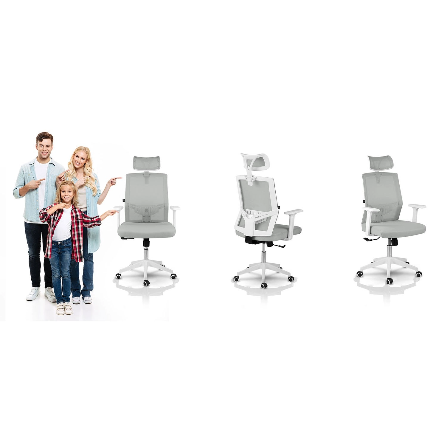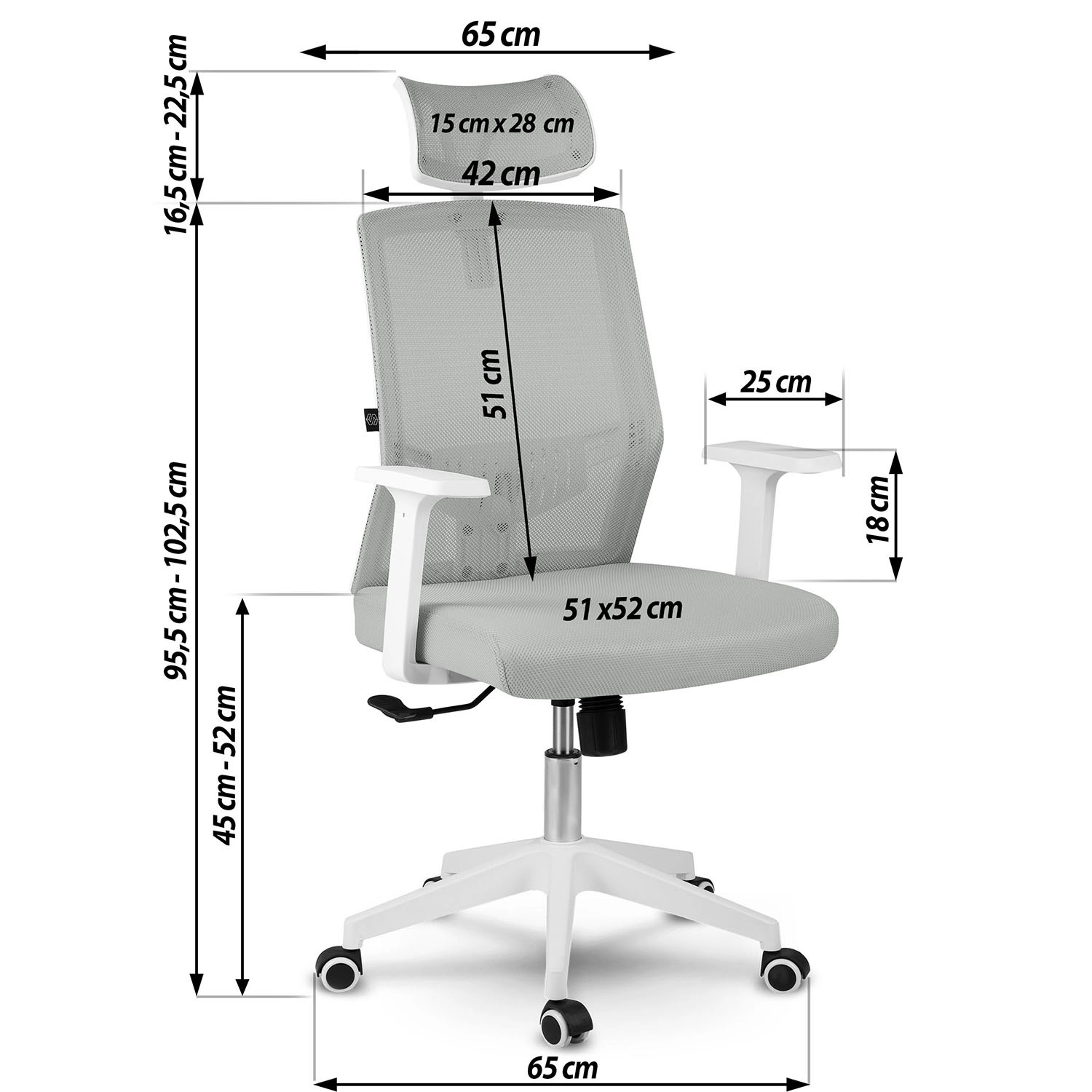 - Reglaje complete – înălțimea șezutului, înclinarea cu blocare și înălțimea/sprijinul pentru cap.