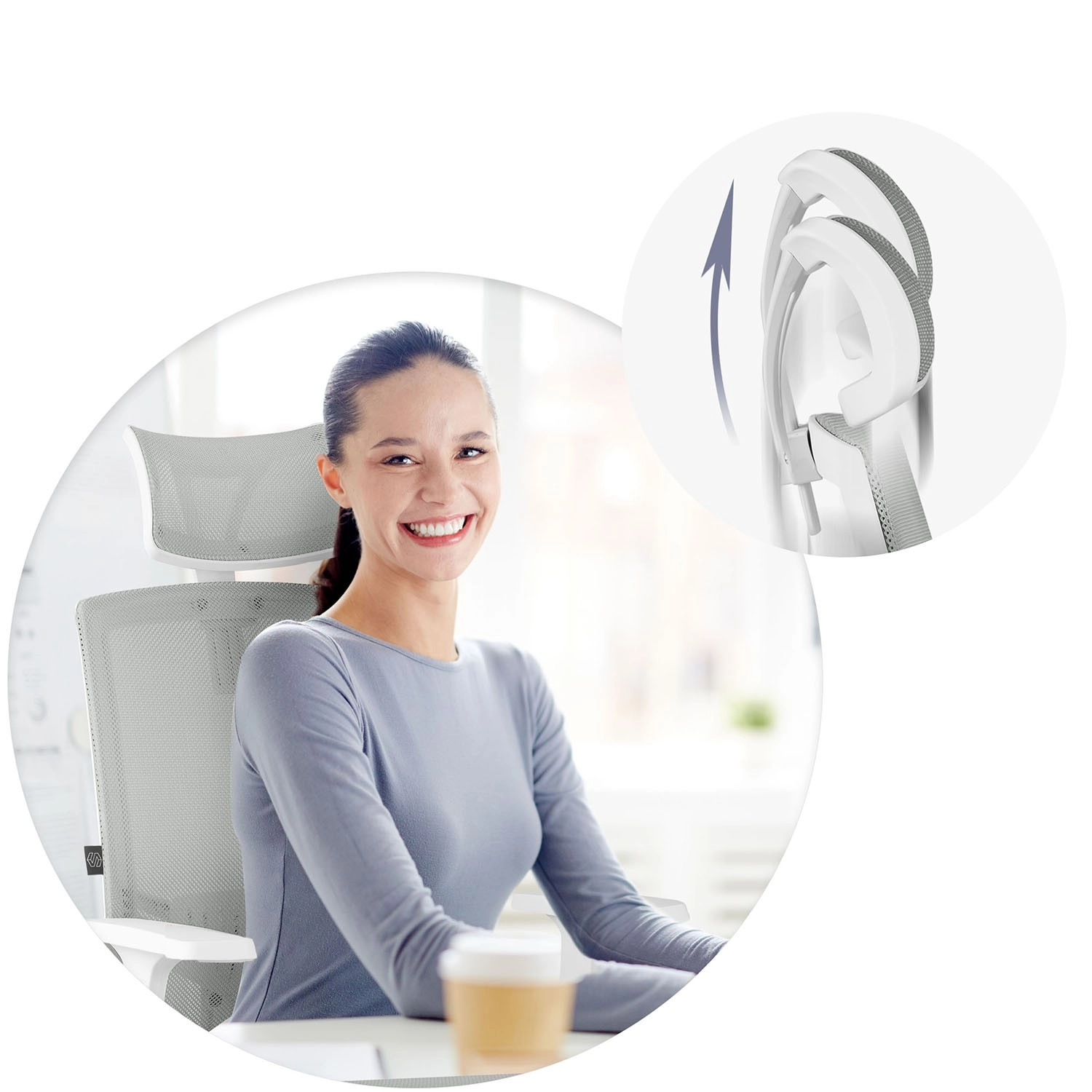 Spătarul înălțat cu tetieră reglabilă pe înălțime reduce solicitarea coloanei cervicale și susține o postură corectă a corpului.
