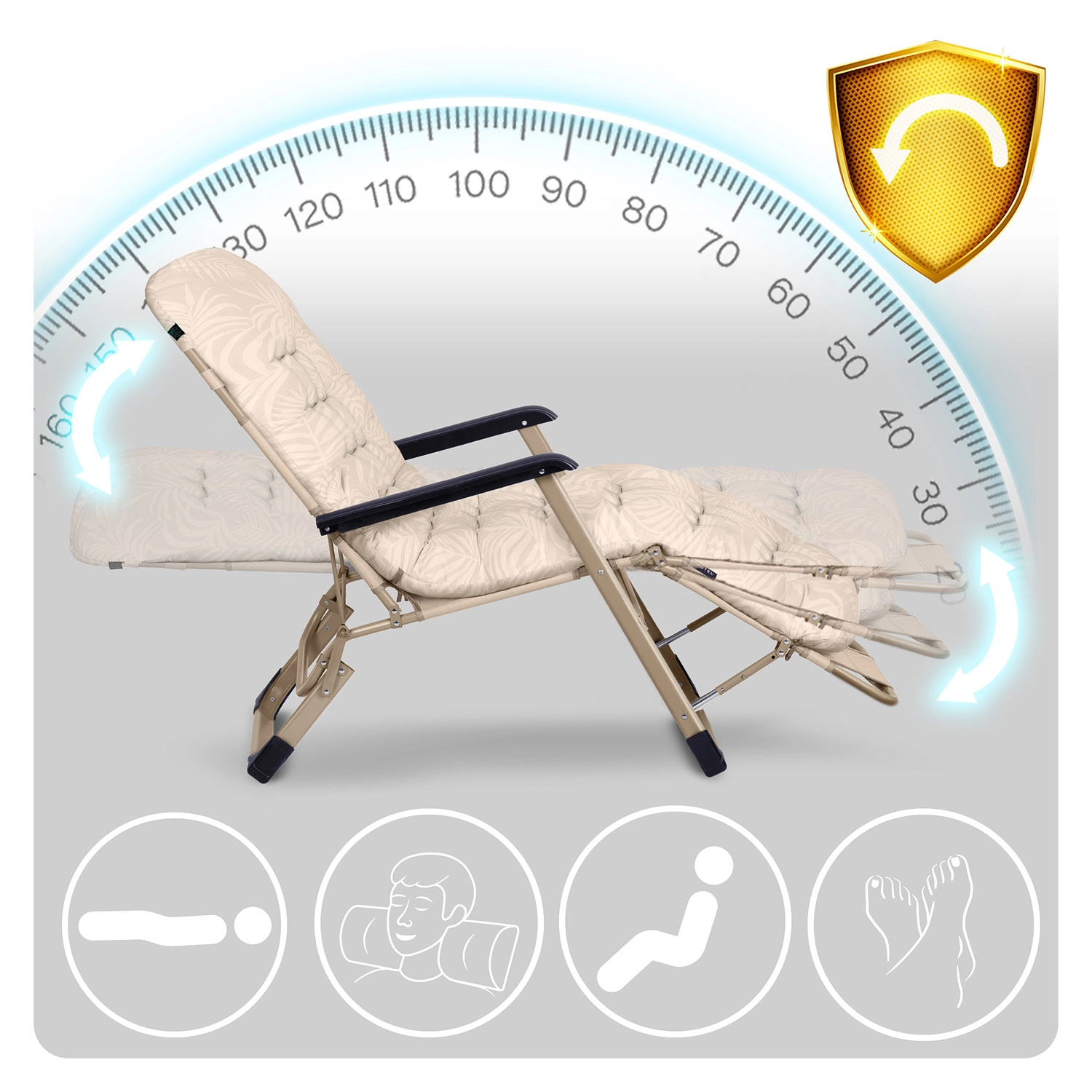 Reglarea lină a spătarului și suportul pentru picioare în 3 trepte vă permit să găsiți poziția ideală pentru citit, odihnă sau somn. Picioarele ridicate susțin circulația și ușurează coloana.