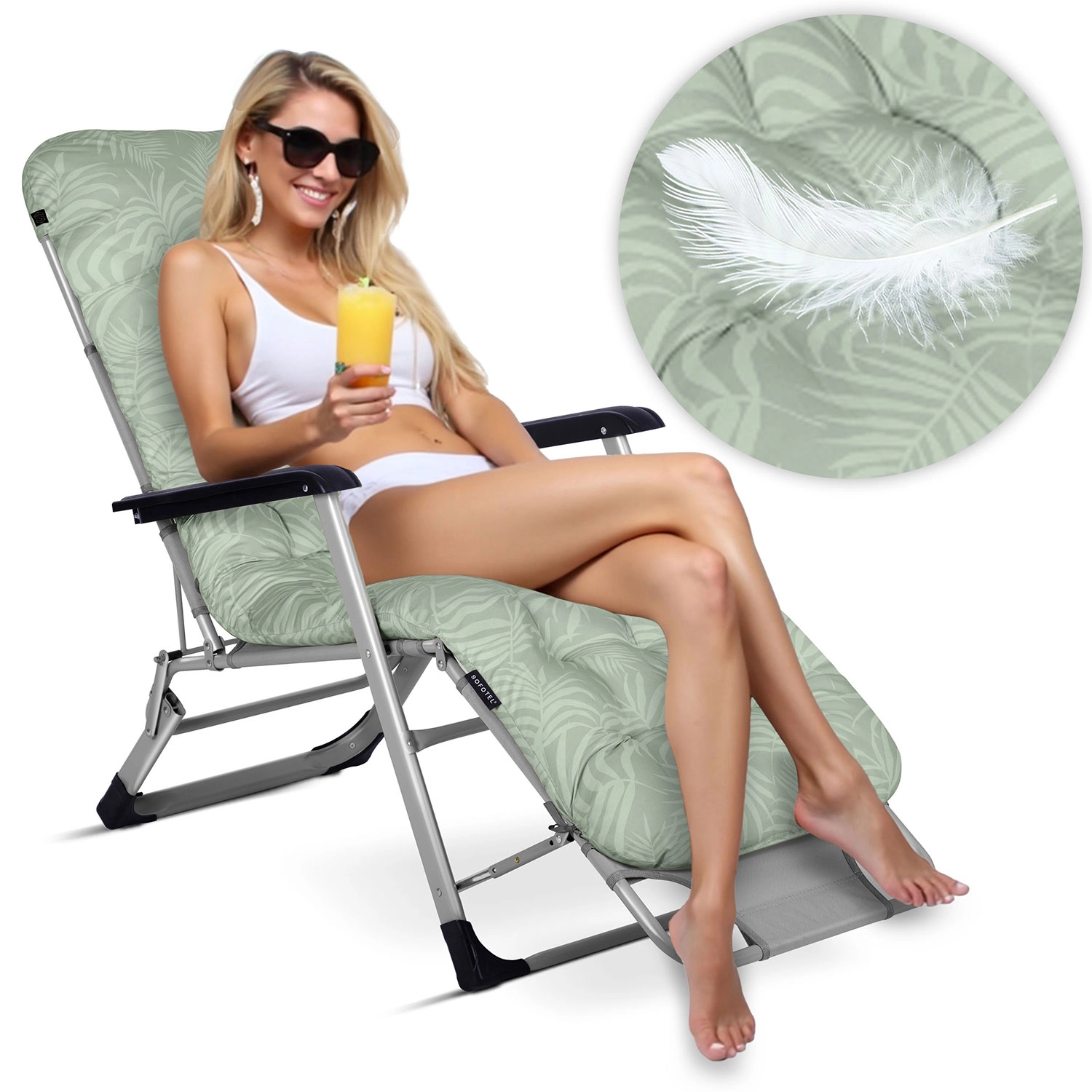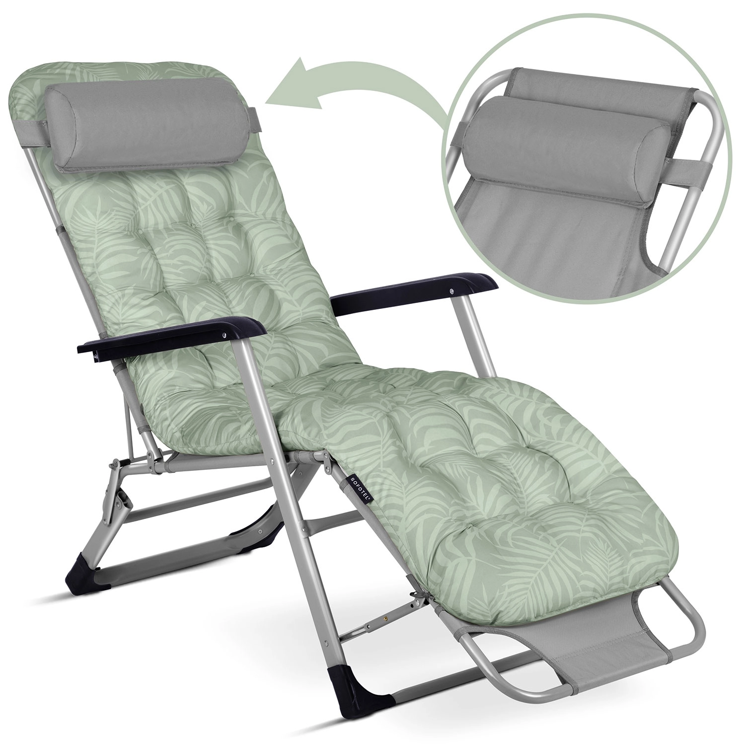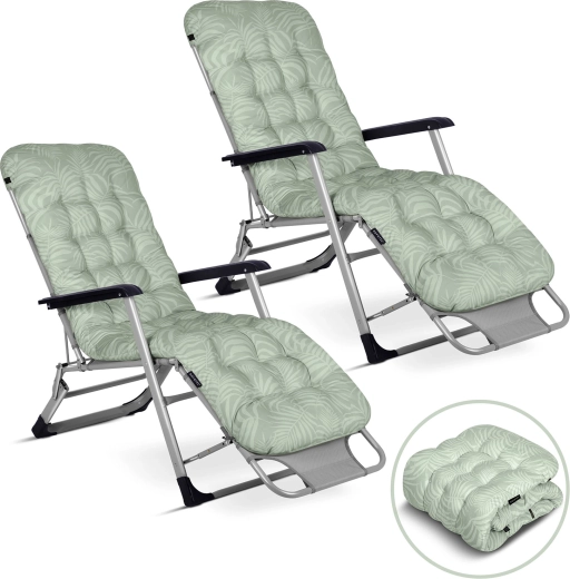 Confort maxim pe terasă, lângă piscină și pe plajă. Setul de două șezlonguri pliabile SOFOTEL ChillWell, cu perne groase, matlasate și spătar cu unghi reglabil până la poziție complet întinsă, oferă relaxare de top. Construcție rezistentă, materiale rezistente la UV, confort absolut datorită pernei pentru cap și pliere ușoară pentru transport și depozitare.