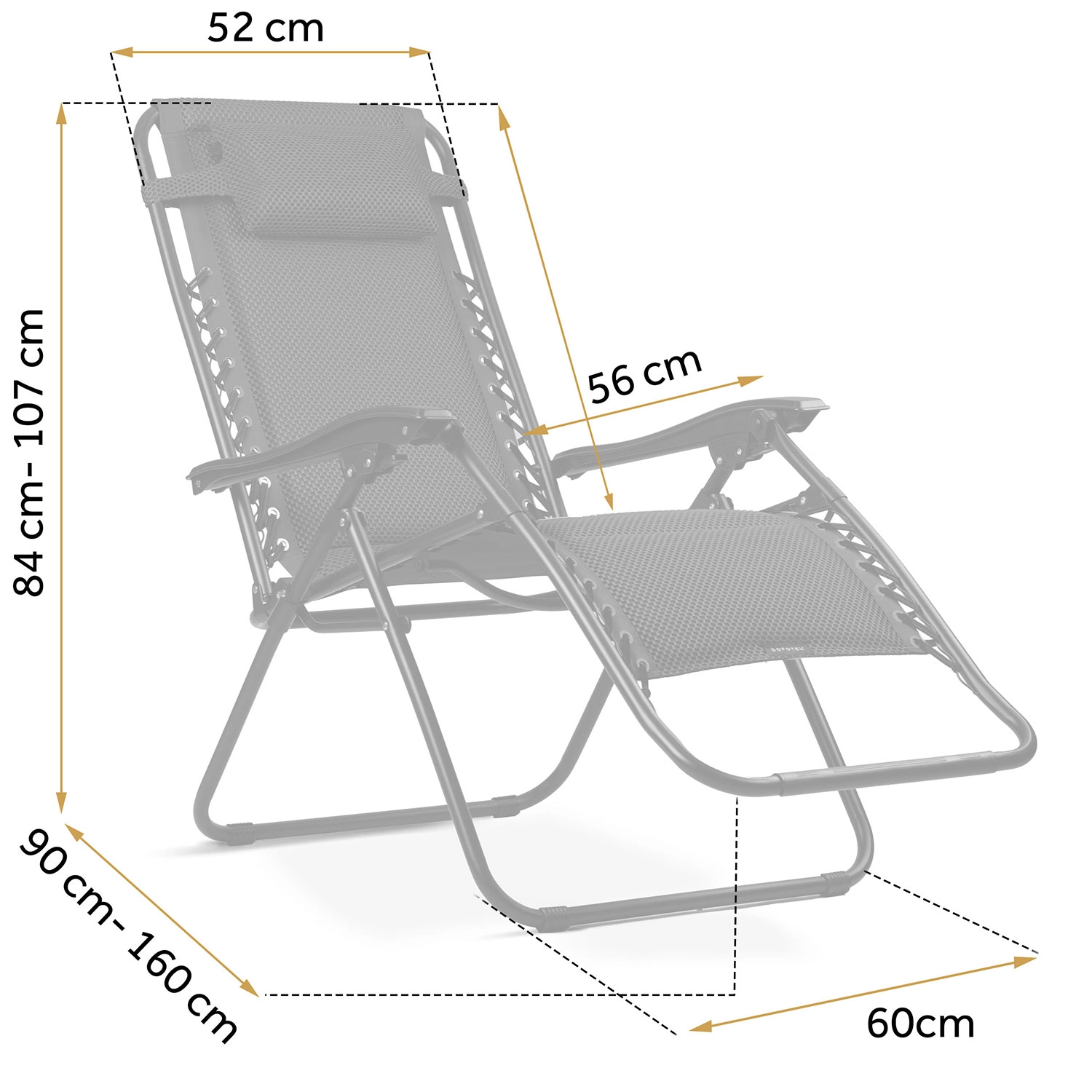 Datorită blocării line a poziției, setați cu ușurință unghiul de ședere sau întindere exact după preferințe. Pernă reglabilă pentru susținere acolo unde aveți nevoie. Construcția durabilă din oțel cu vopsea pulbere este stabilă, rezistentă și pregătită pentru utilizare frecventă în aer liber.