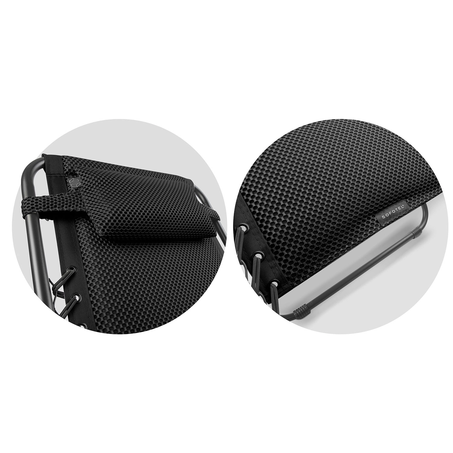 Bucurați-vă de relaxare deplină cu șezlongul gravitațional pliabil Sofotel ChillWell Soft în elegantul negru. Construcția ergonomică permite reglarea lină a înclinației spătarului până aproape de starea de imponderabilitate, pentru o detensionare maximă. Pernă moale pentru susținerea capului și a gâtului, iar inovatorul 3D FoamGrid™ asigură catifelare excepțională, respirabilitate și uscare rapidă. Cadrul solid din oțel cu vopsea pulbere garantează stabilitate și durată de viață îndelungată acasă, pe terasă, balcon sau în călătorii.
