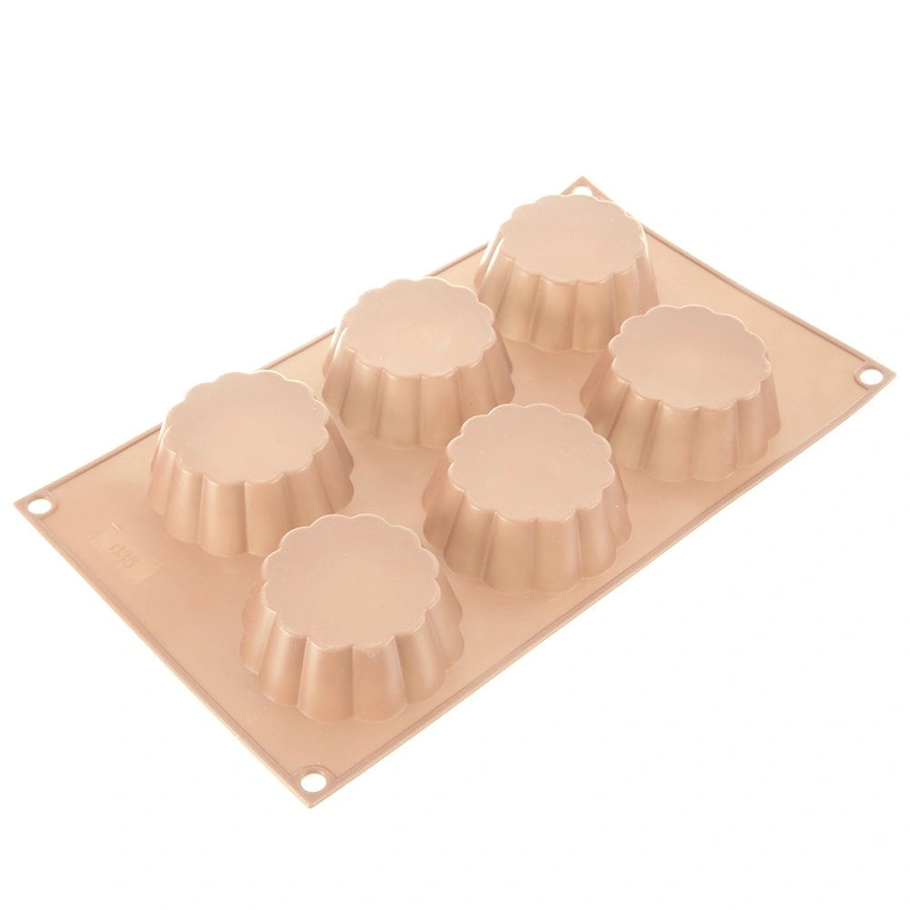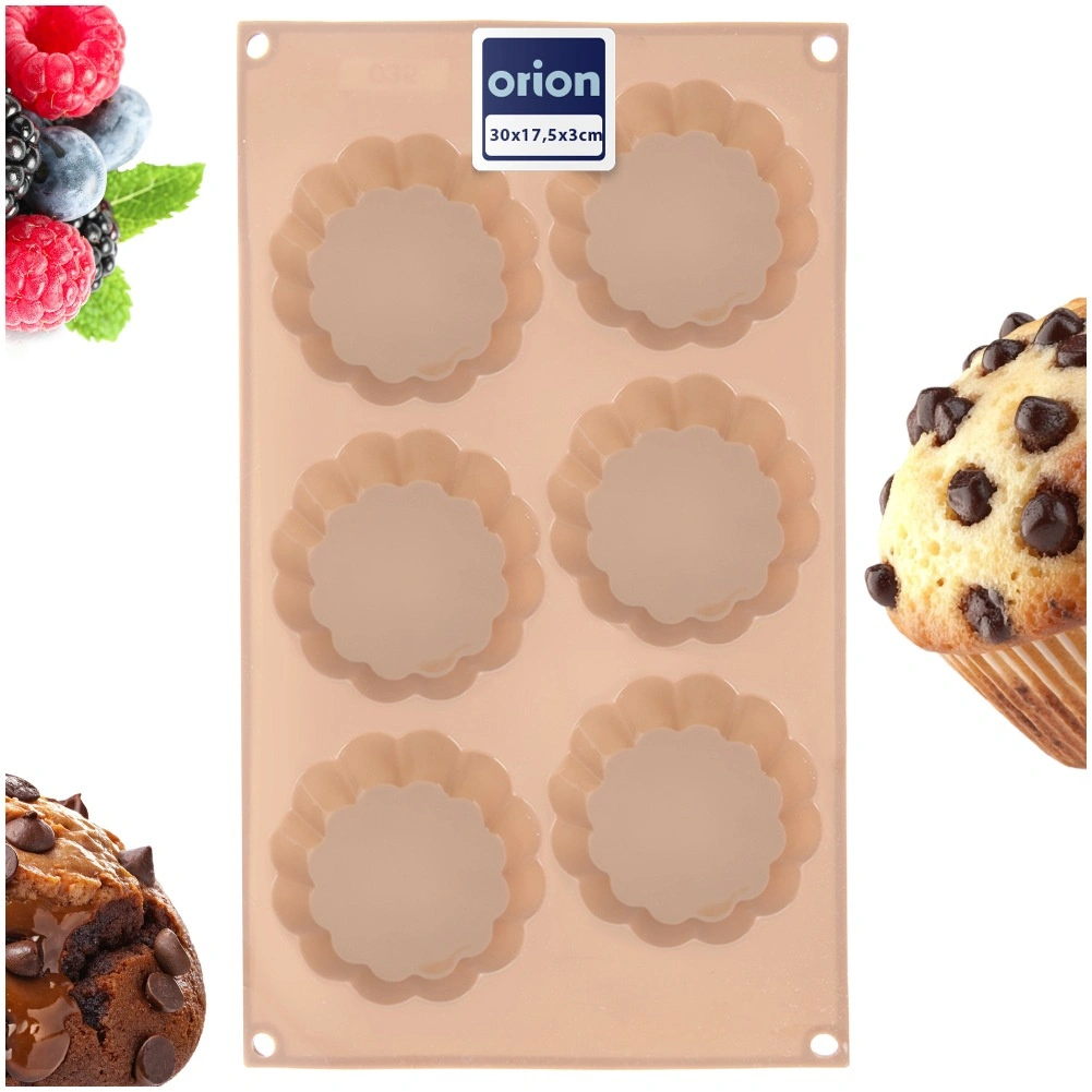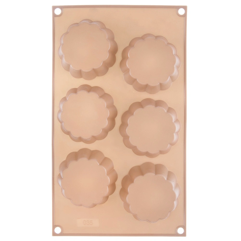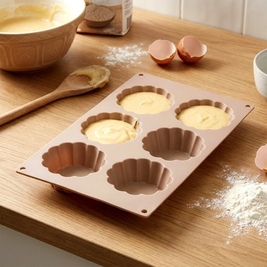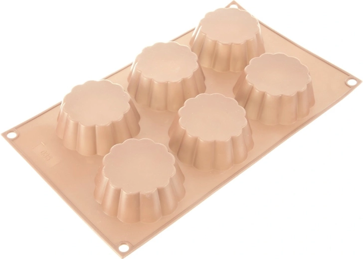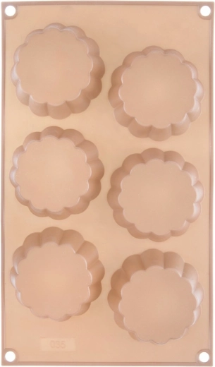 Forma practică din silicon pentru copt, cu 6 cavități în formă de floare, vă permite să pregătiți biscuiți de casă, brioșe, praline și mini deserturi. Datorită materialului flexibil, aluatul nu se lipește, iar deserturile gata coapte se scot ușor. Forma este rezistentă la temperaturi de la -40 °C la +200 °C, potrivită pentru cuptor, cuptor cu microunde și congelator și poate fi spălată în mașina de spălat vase.
