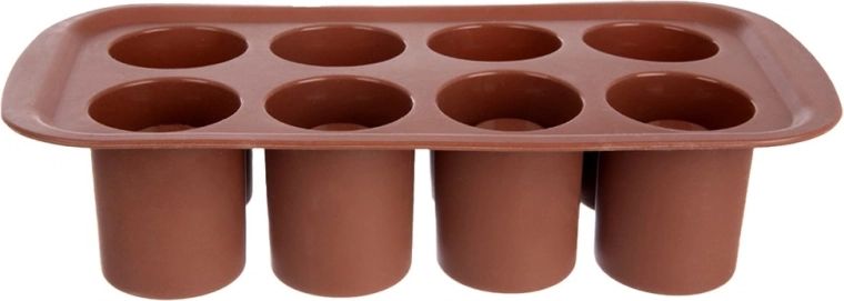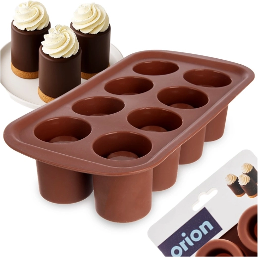 Această formă practică din silicon permite realizarea de deserturi spectaculoase cu cavitate pentru creme, spume, înghețată sau lichioruri. Datorită celor 8 forme cu diametrul de cca 4,5 cm și înălțimea de 6 cm, pregătiți mai multe porții simultan – ideală pentru mini deserturi, cupe de ciocolată și gustări sărate.
