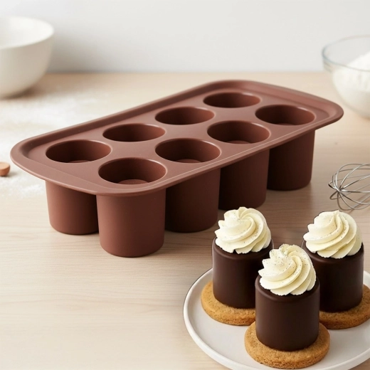 Fiecare cavitate creează o formă cilindrică înaltă cu spațiu pentru umplere cu cremă, fructe, spumă sau lichior – ideală pentru servire elegantă.